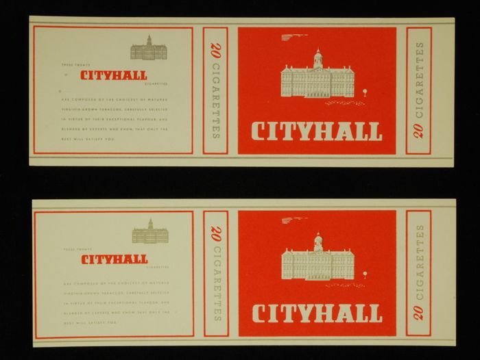 Wit en rode, papieren labels VAN NELLE CITY HALL, 50...