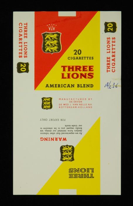 Plat gevouwen, kartonnen doos VAN NELLE THREE LIONS,...