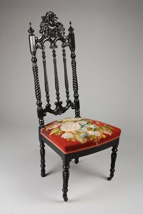 Zwart gepolitoerde mahoniehouten neo-rococo stoel