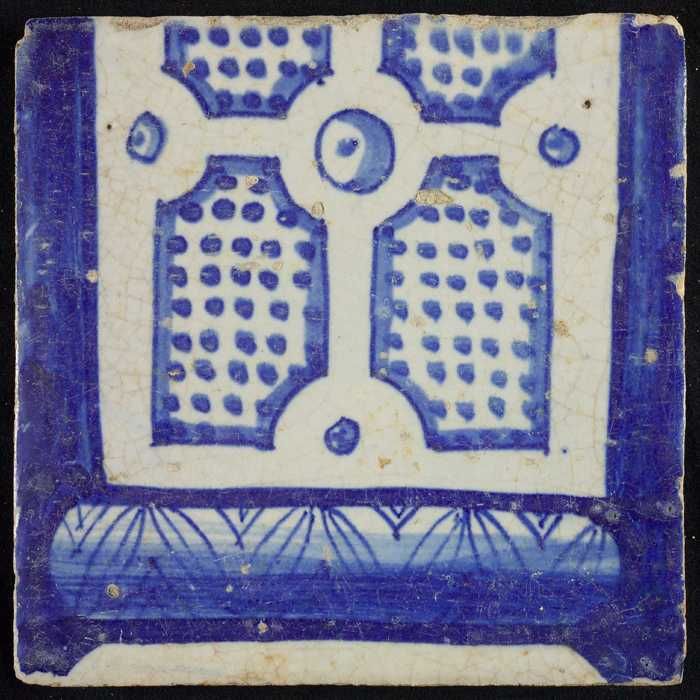 Tegel van schoorsteenpilaster, blauw op wit, onderzi...