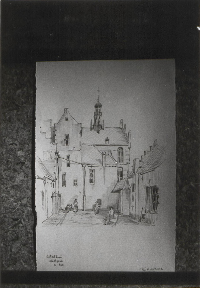 Stadhuis Westgevel in 1860. Getekend door Th. A. Aus...