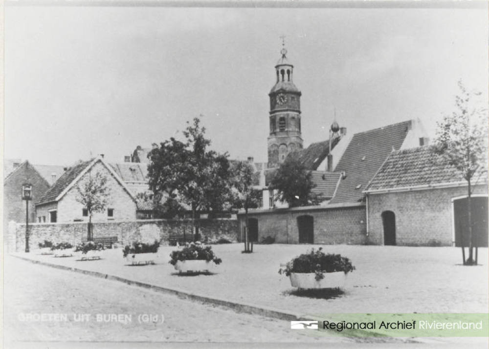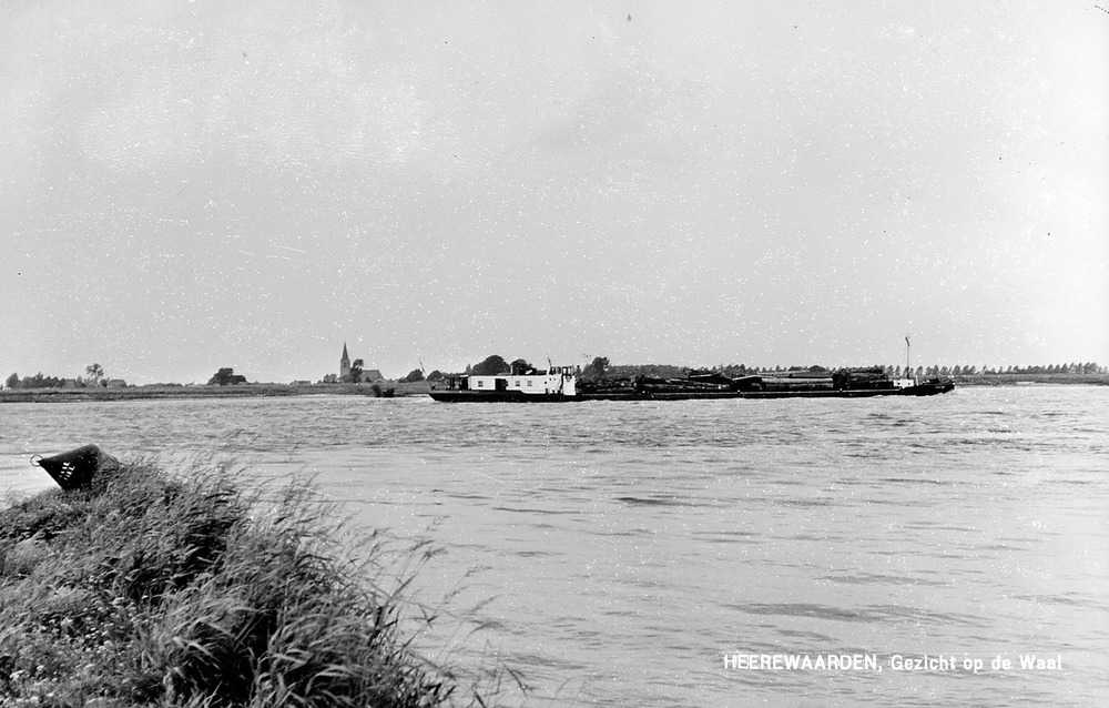 Zicht vanaf de Waalbandijk op de hervormde kerk aan ...