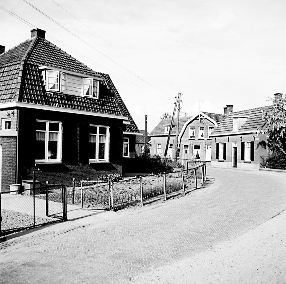 Achterzijde huizen en schuren. Op de achtergrond de ...