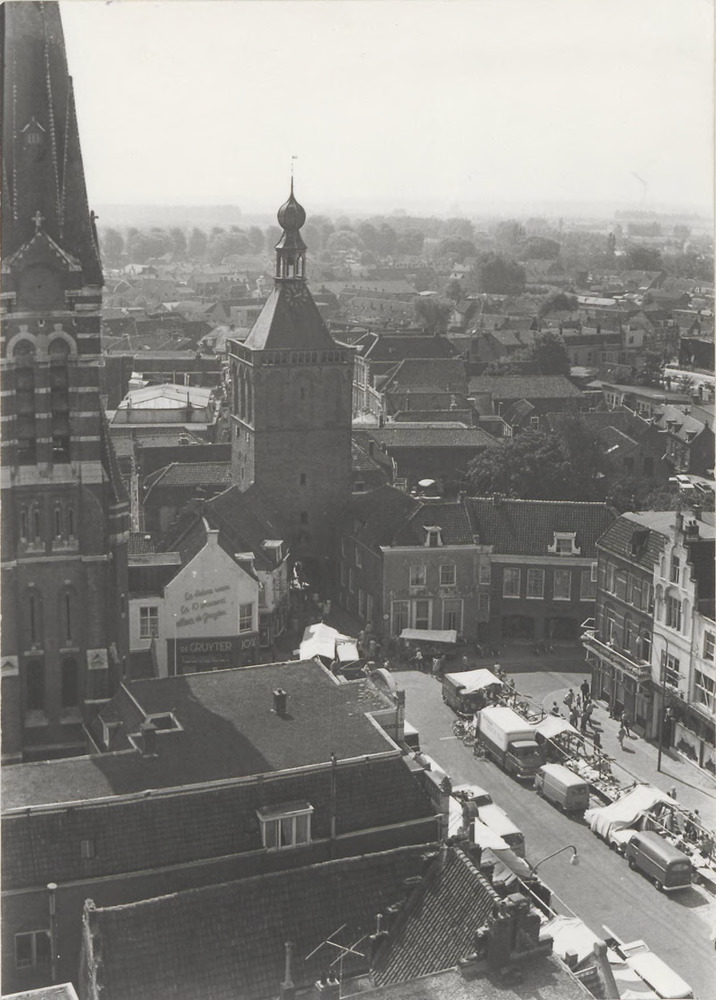 Binnenpoort met weekmarkt. Foto genomen vanaf de Vie...