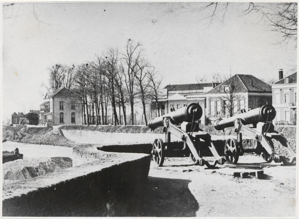 De kanonnen op de Tolhuiswal. Van het midden links h...