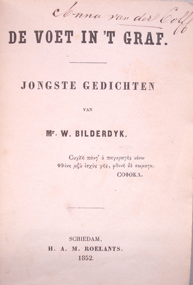 De voet in 't graf. Jongste gedichten van Mr. W. Bil...
