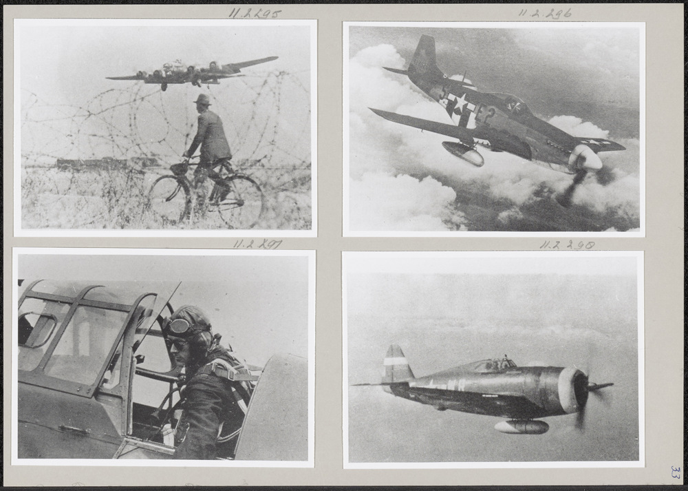 Foto landende B-17 met op de voorgrond man op fiets ...