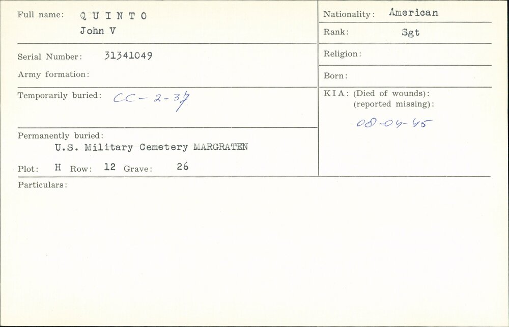 Oorlogsgraven comité kaarten Achternamen Q