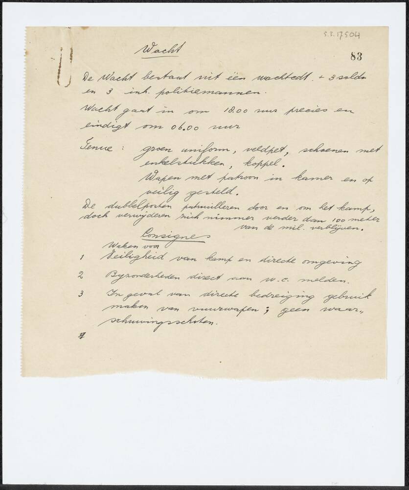 Aanwijzing betreffende de 'Wacht' met details over h...