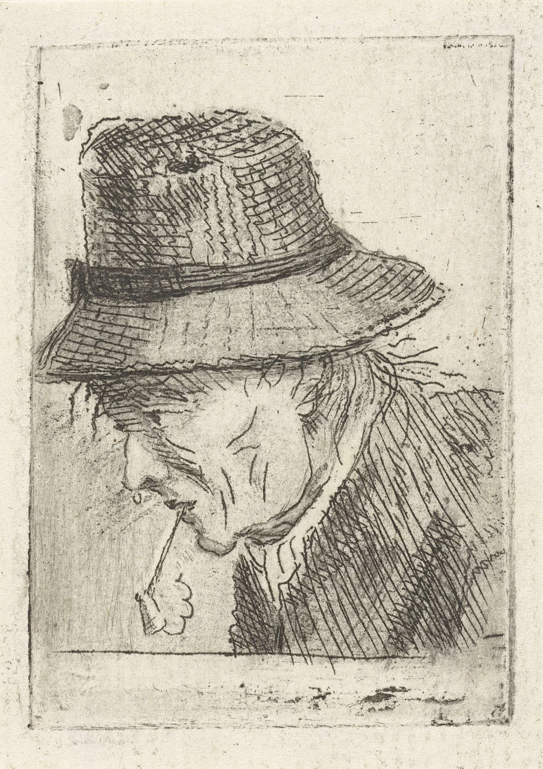 Manshoofd met hoed en pijp