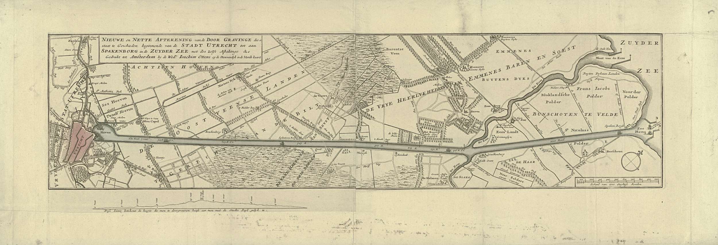 Kaart van het voorgestelde kanaal tussen Utrecht en ...