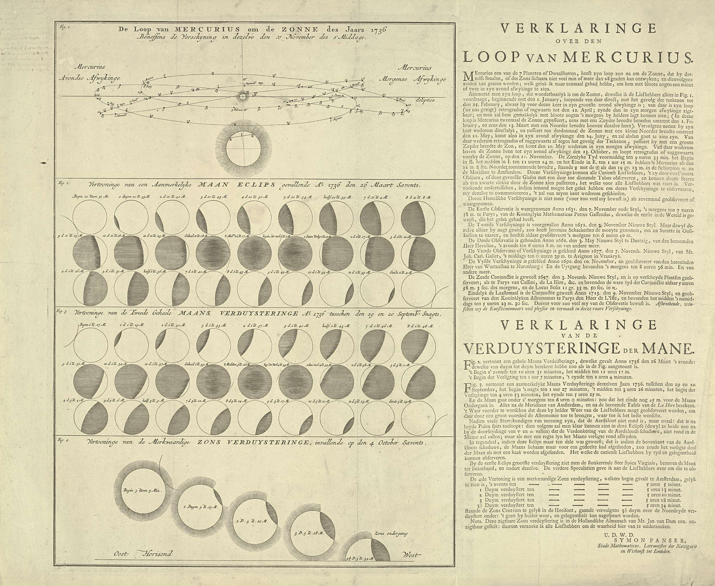 Vier astronomische verschijnselen in het jaar 1736