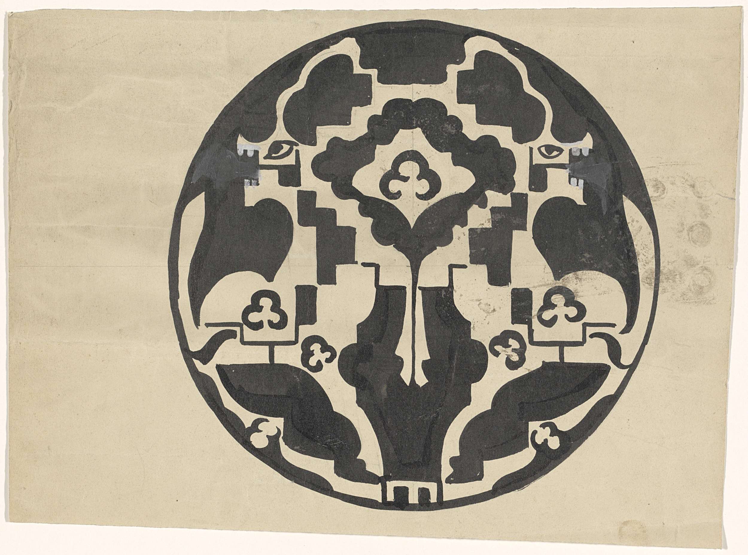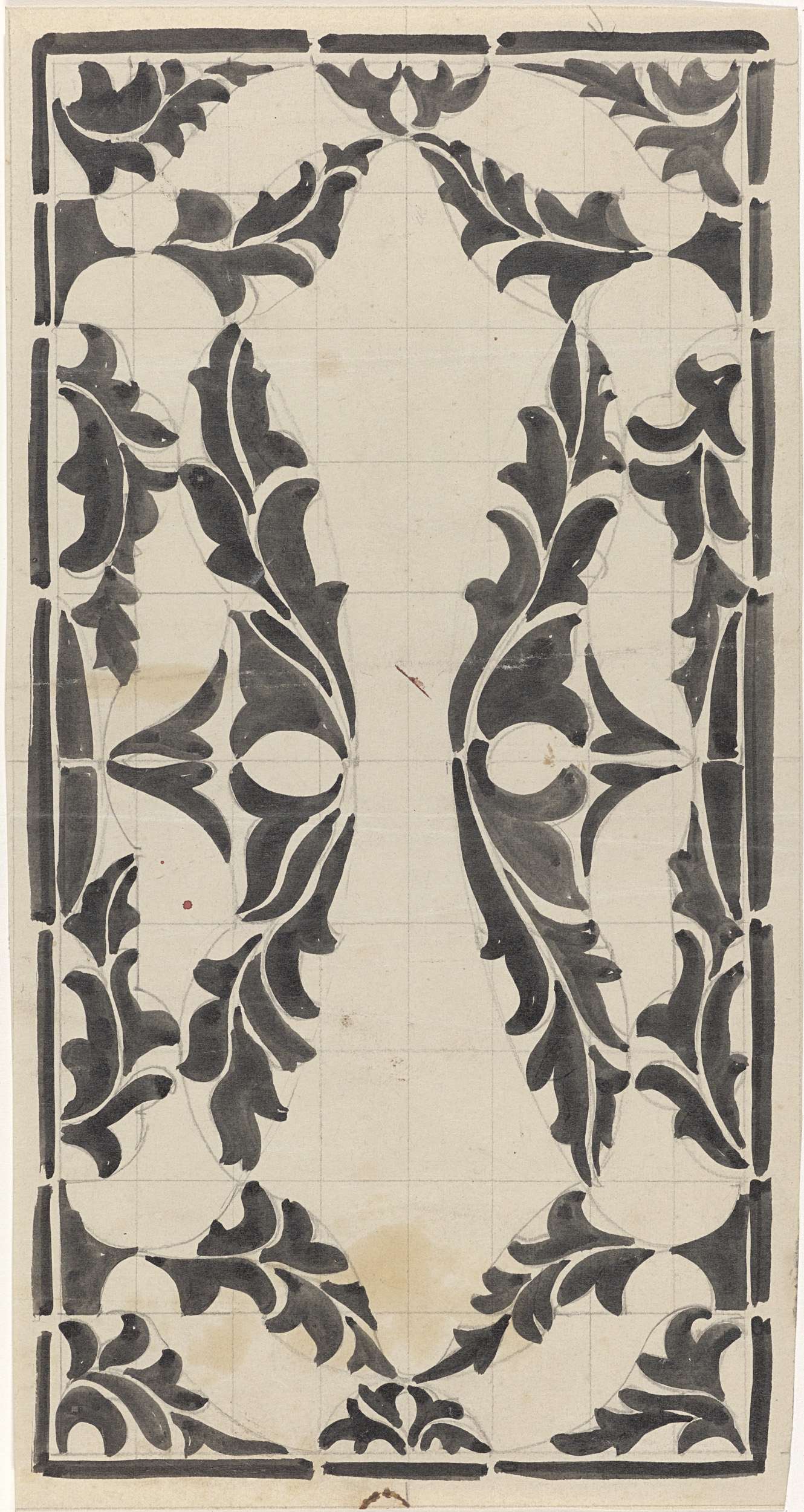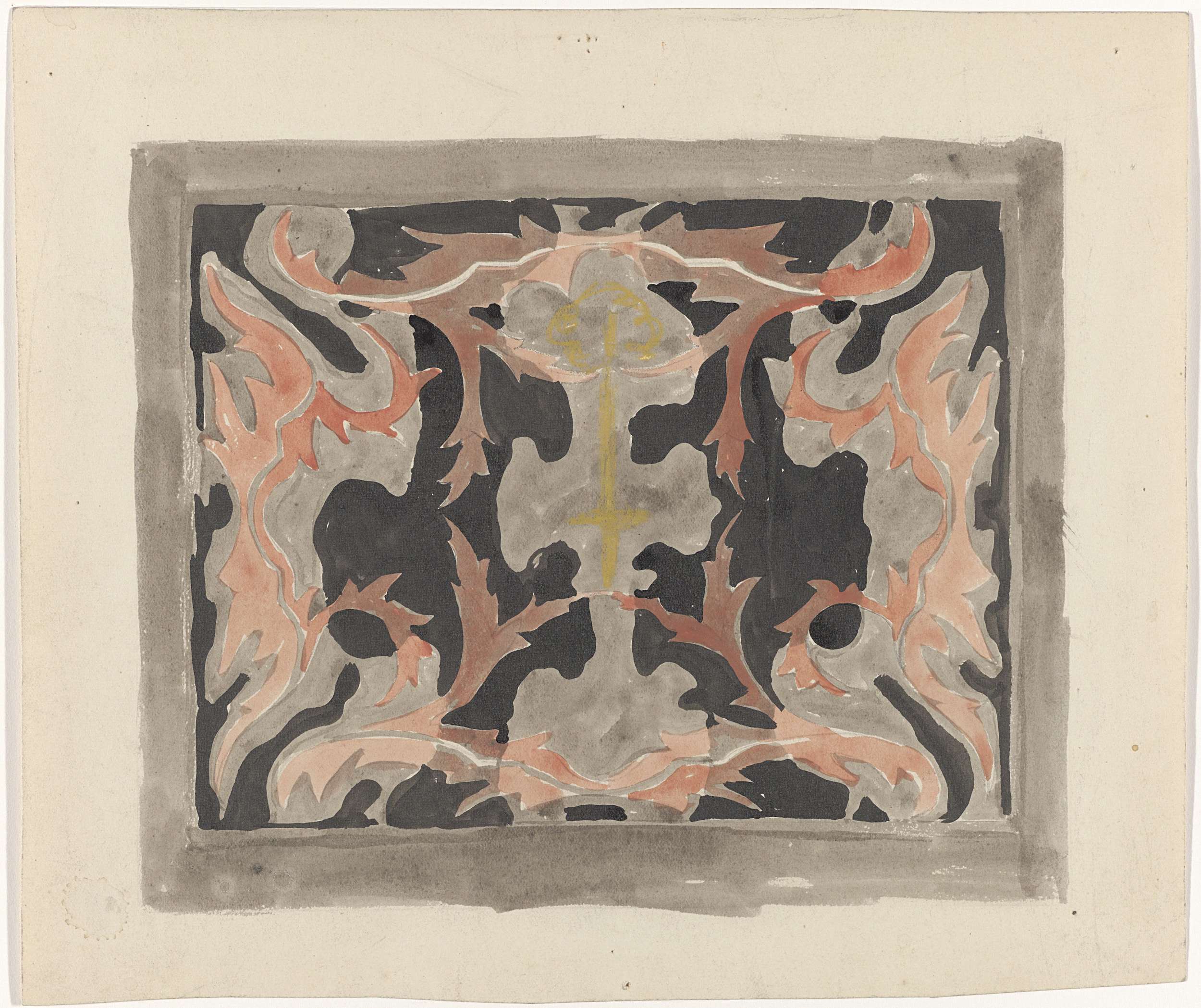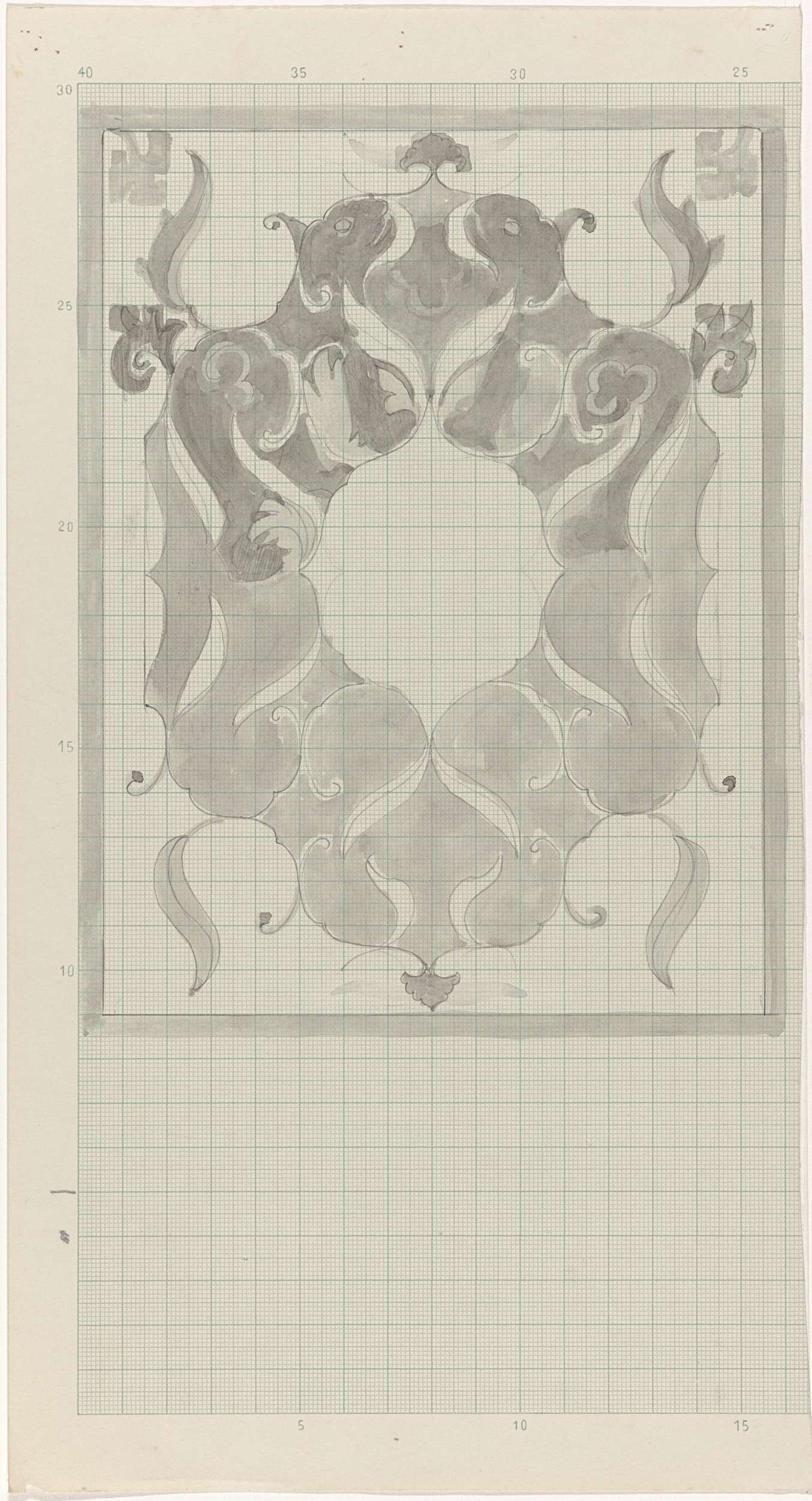 Ontwerp voor een decoratief paneel, met gestileerde ...
