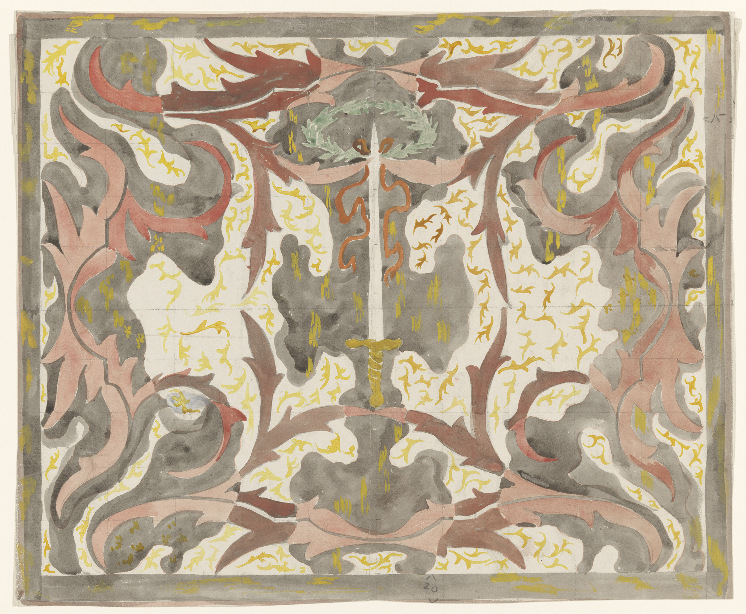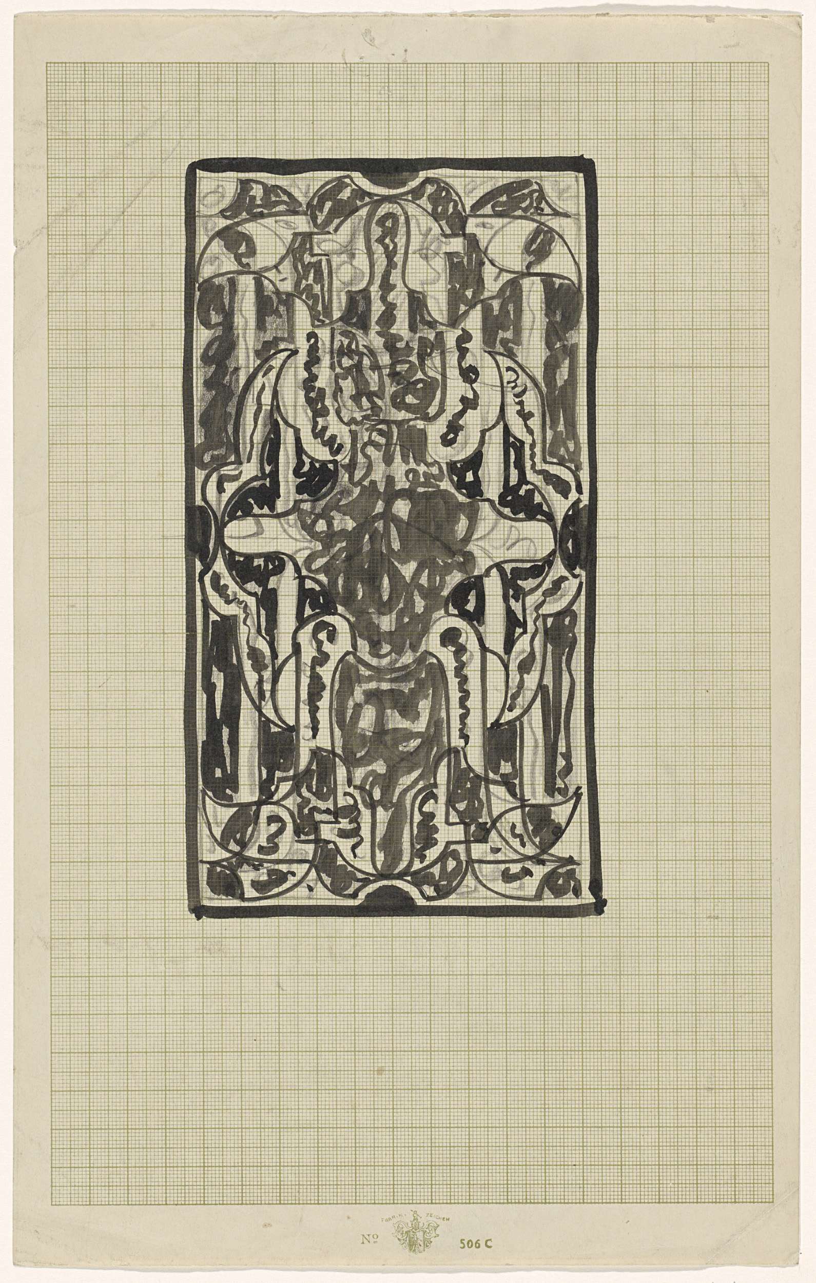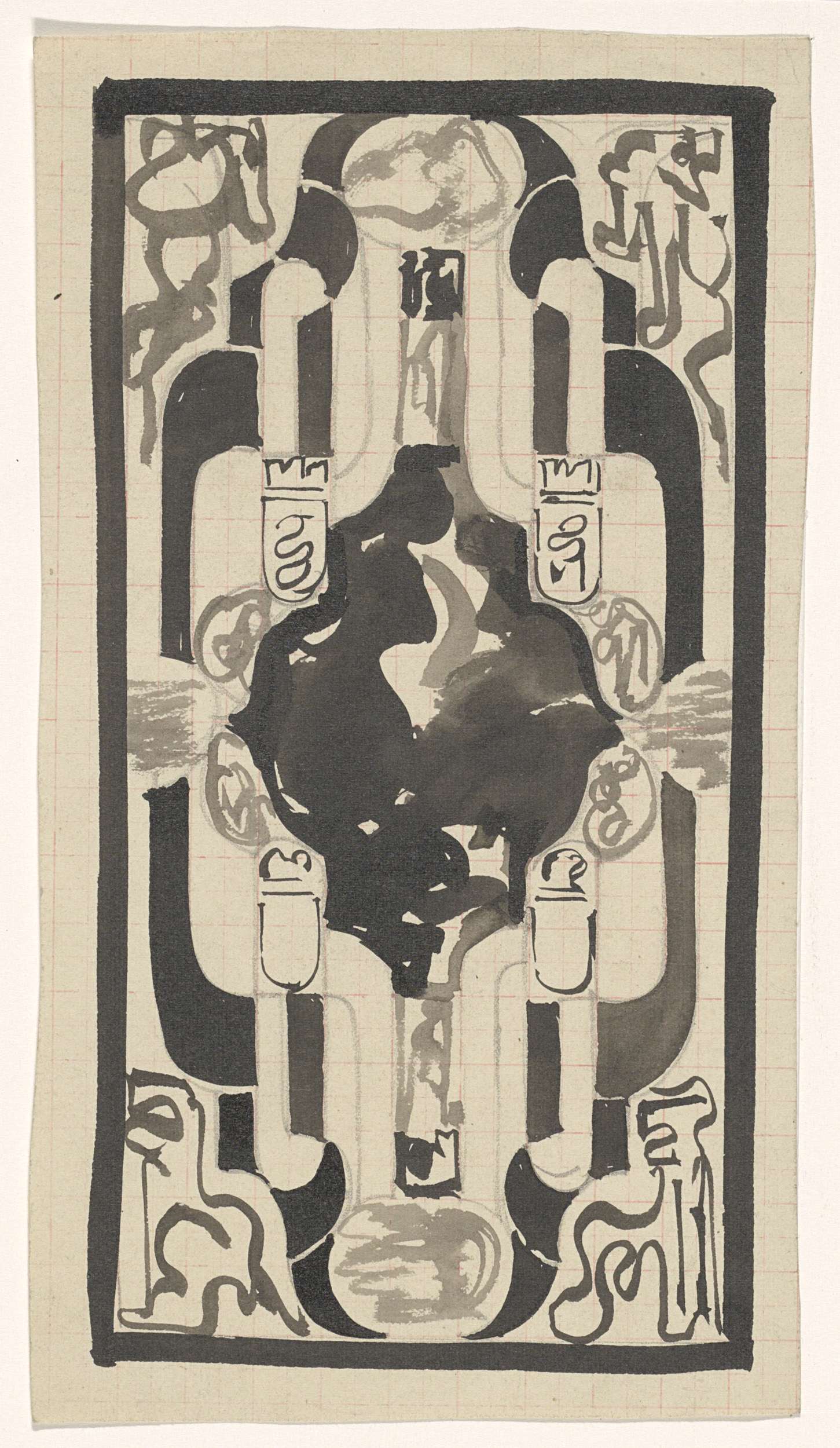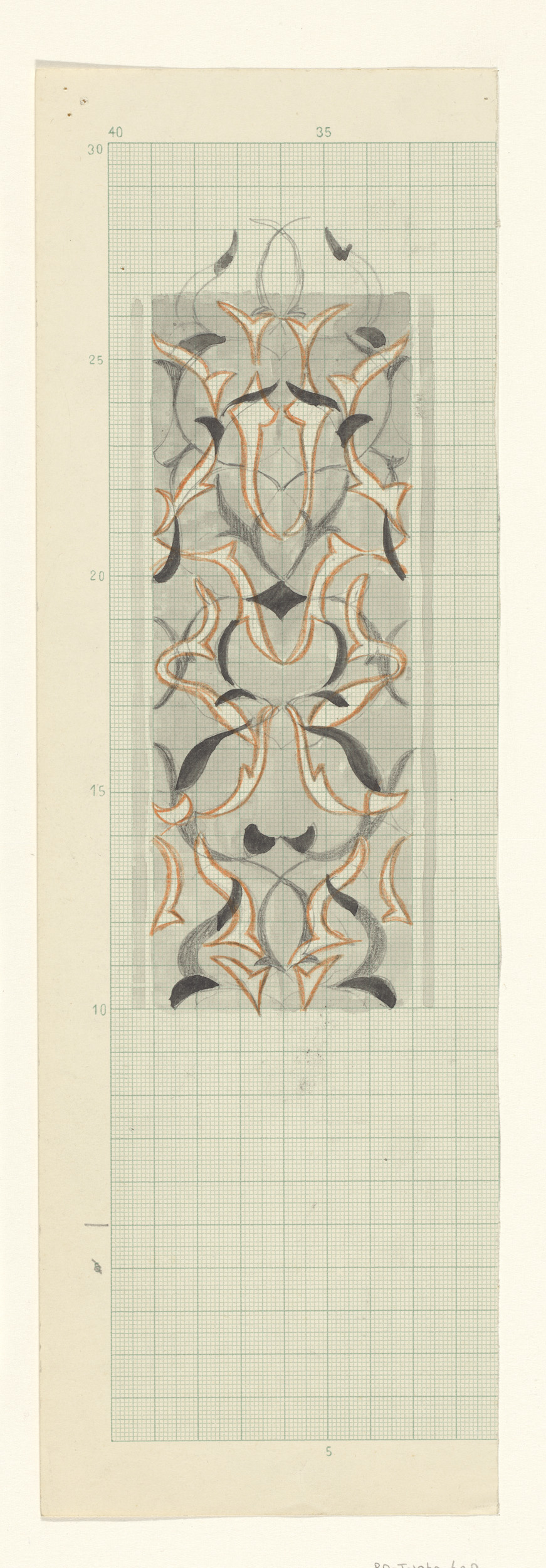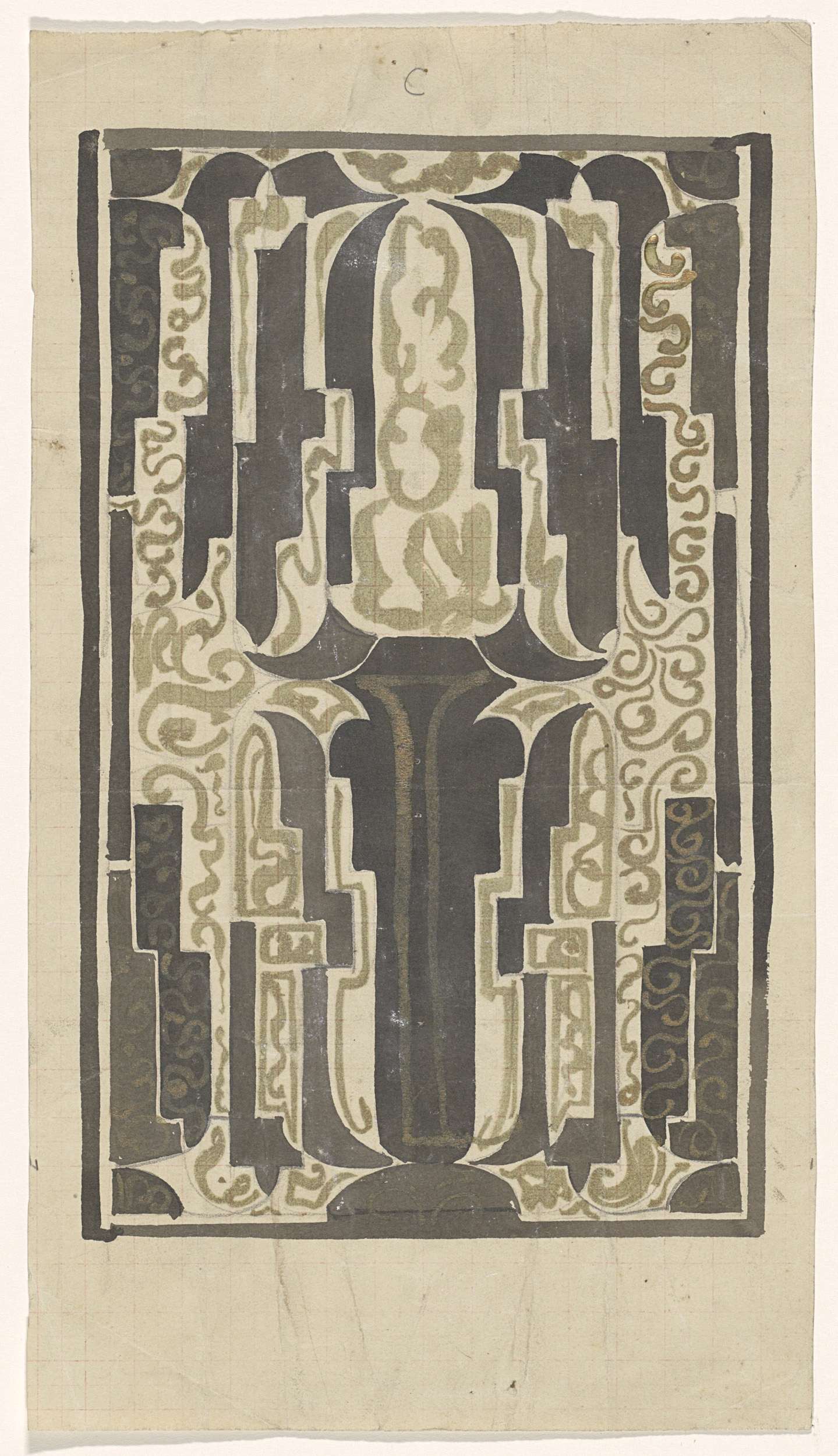 Ontwerp voor een decoratief paneel, met gestileerde ...