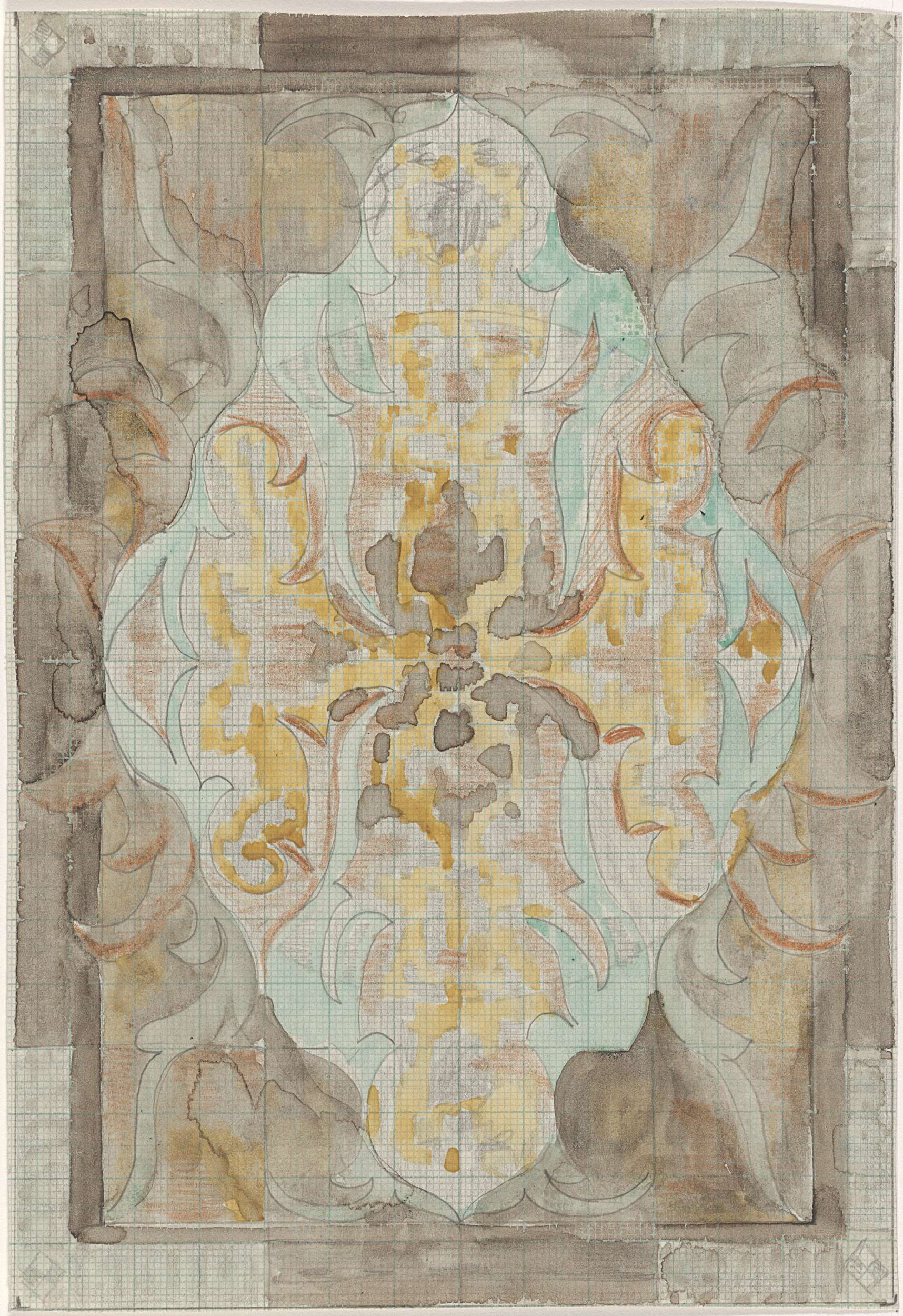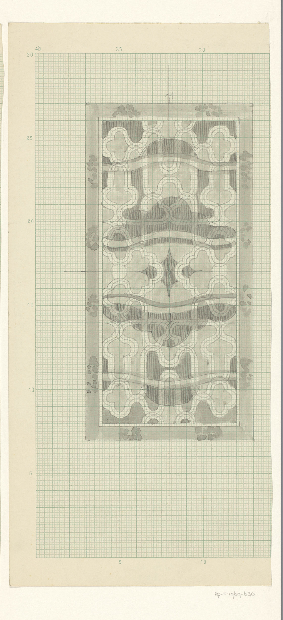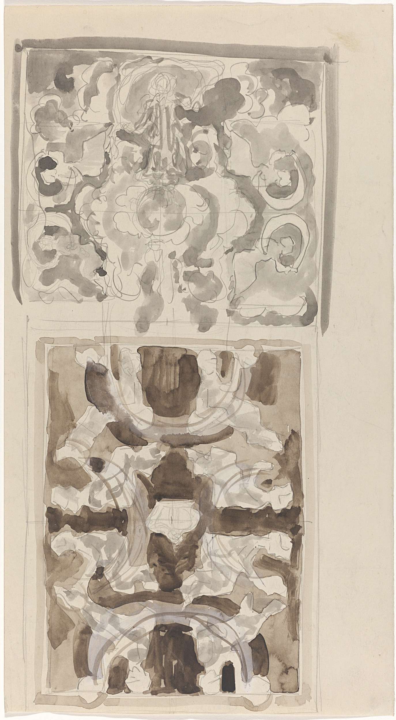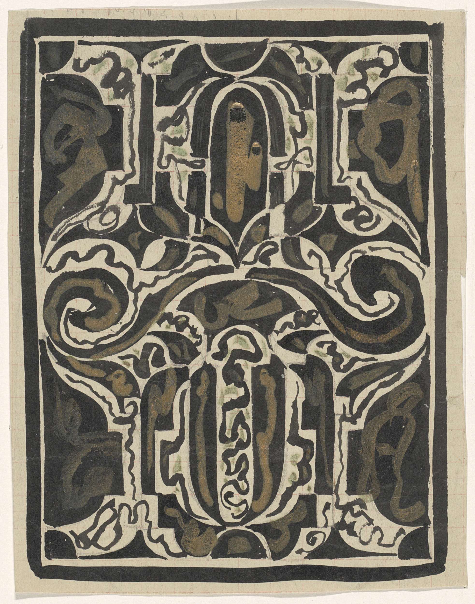 Ontwerp voor een decoratief paneel, met gestileerde ...