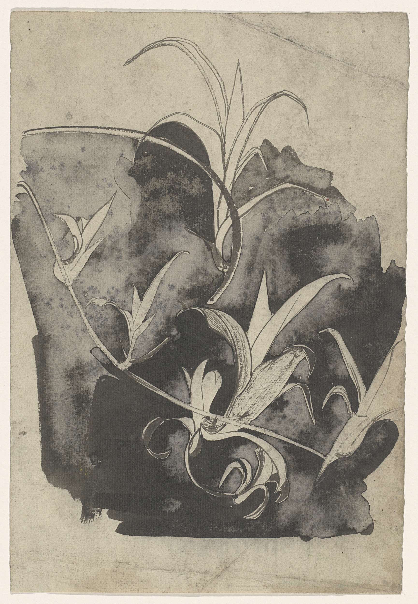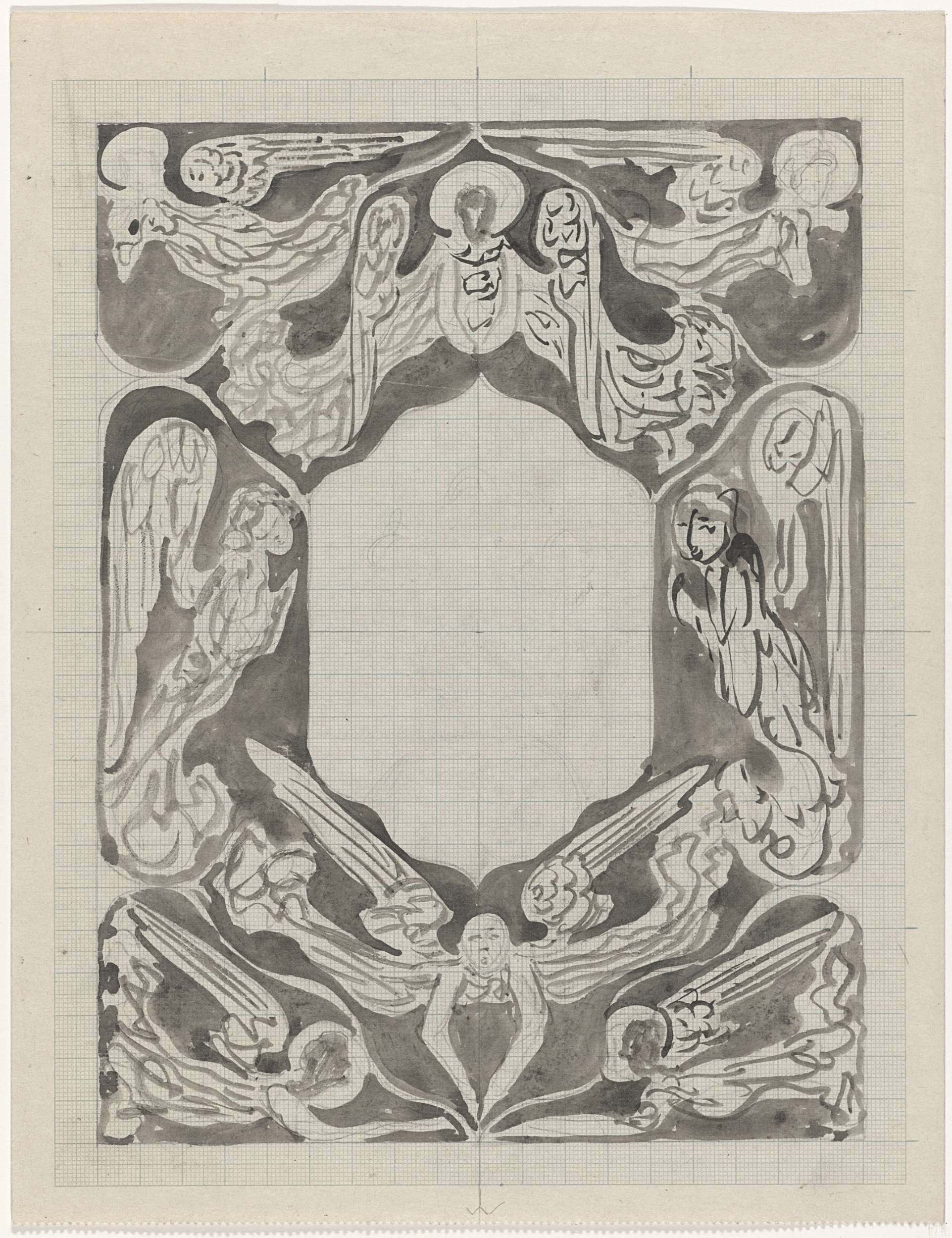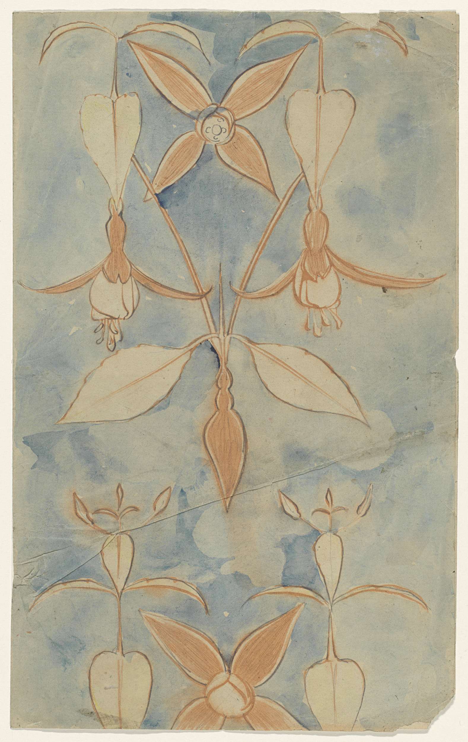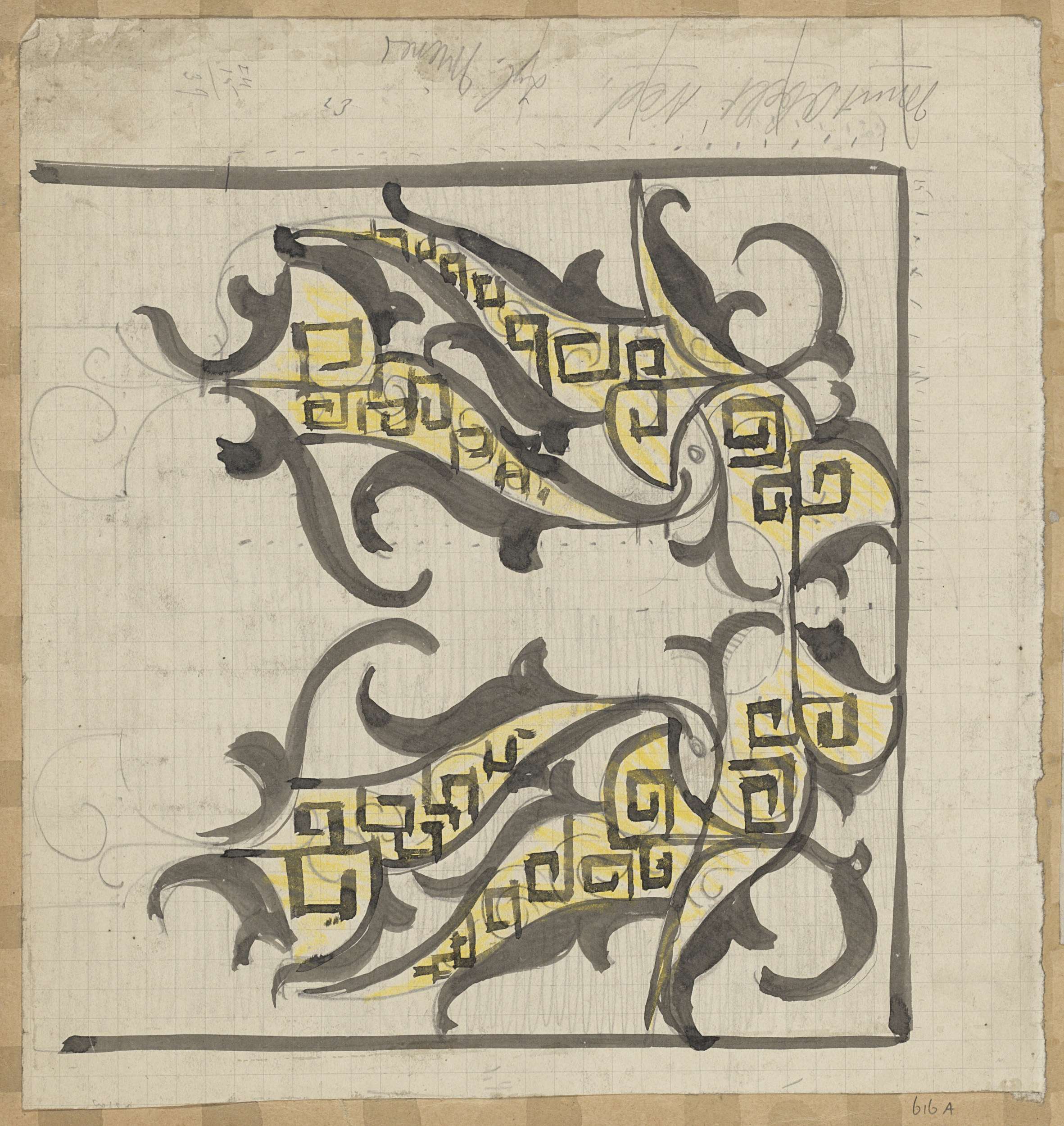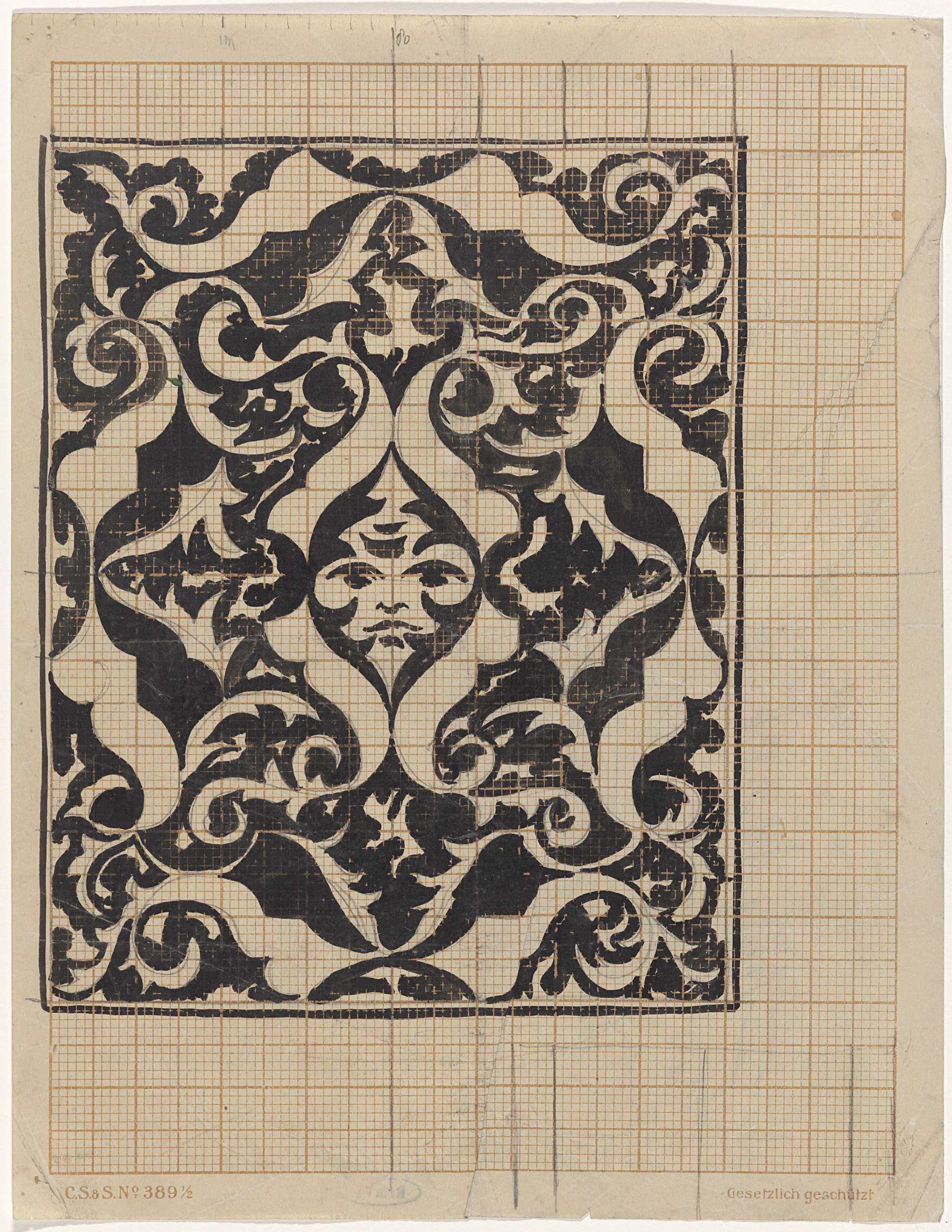Ontwerp voor een decoratief paneel, met gestileerde ...