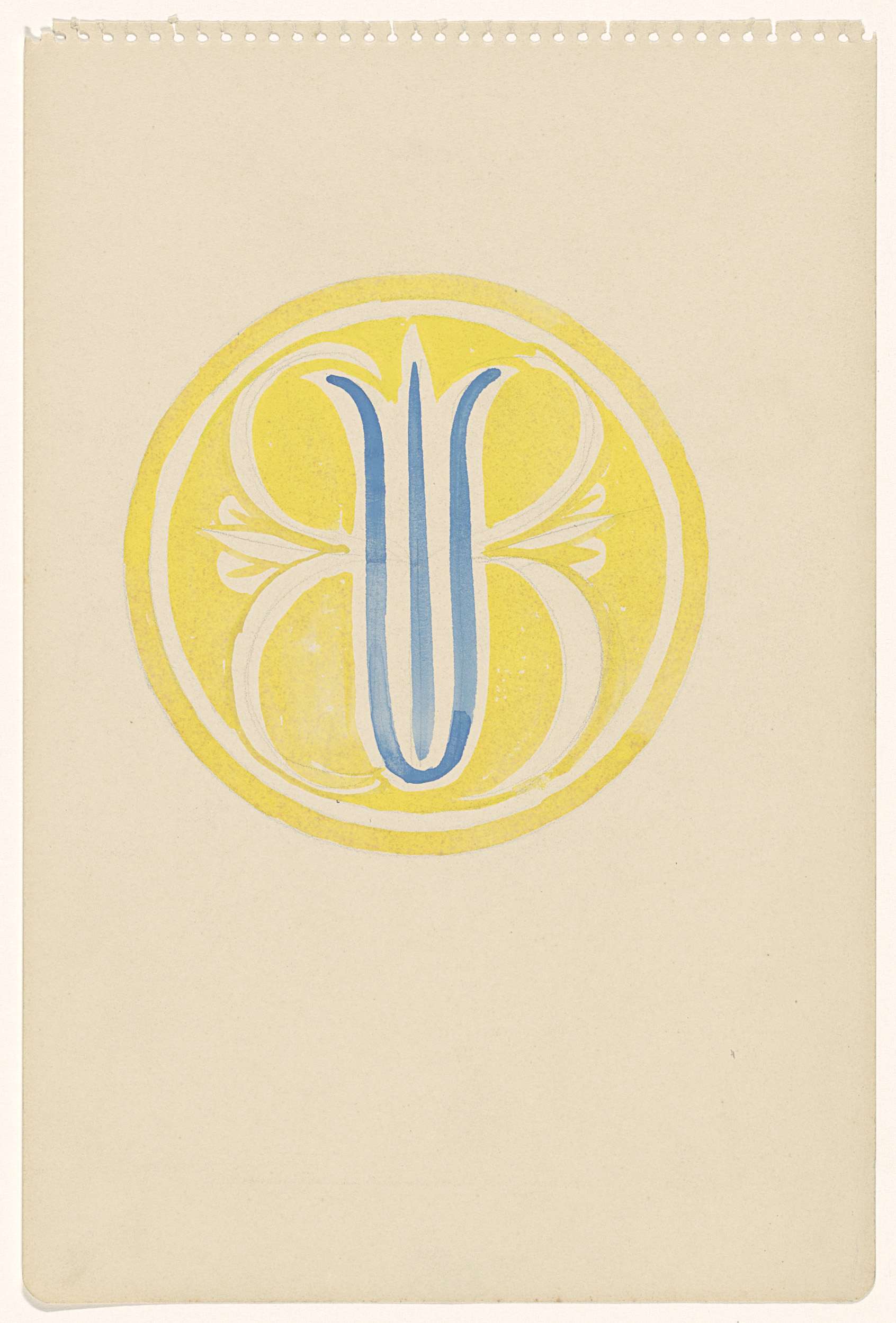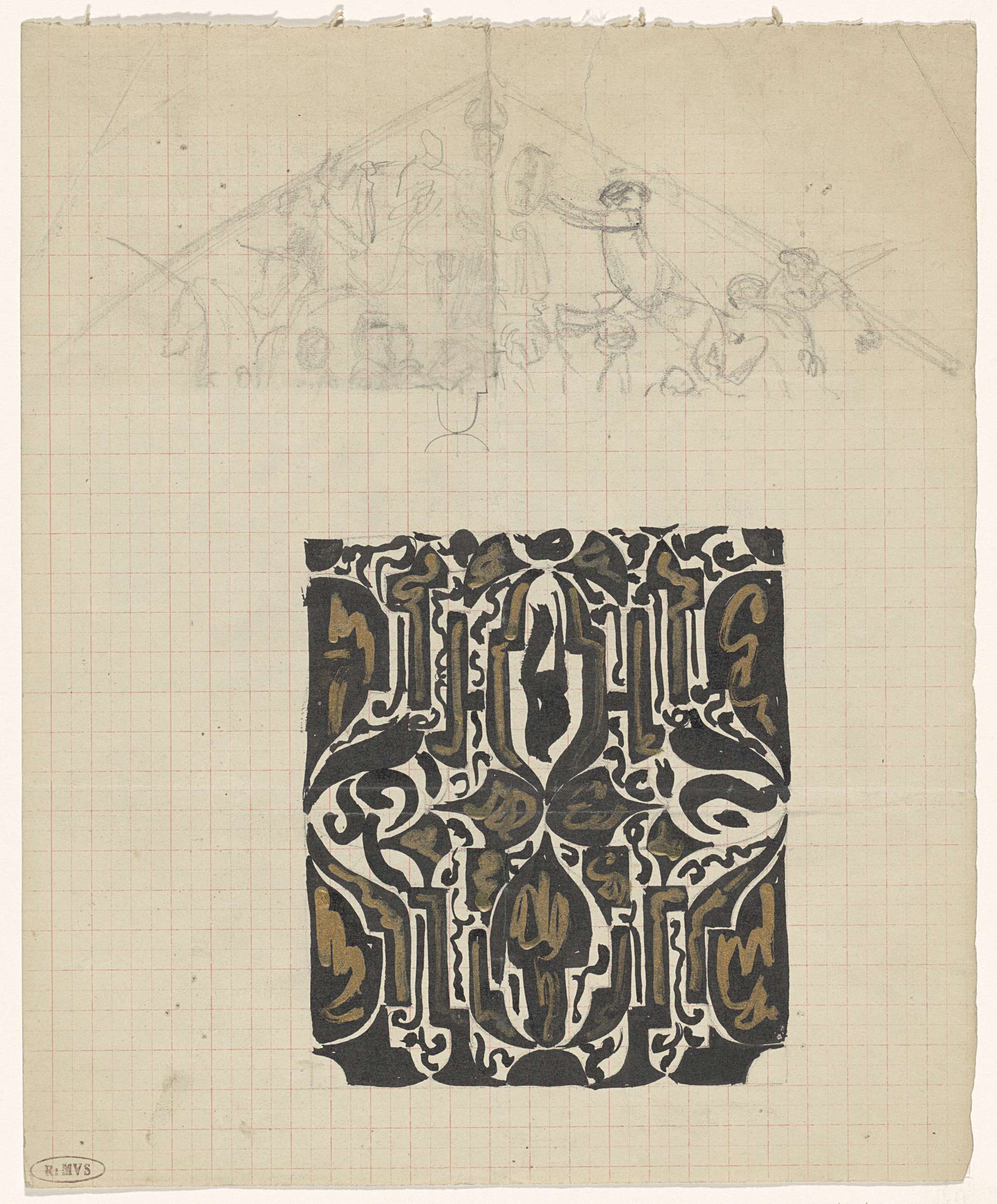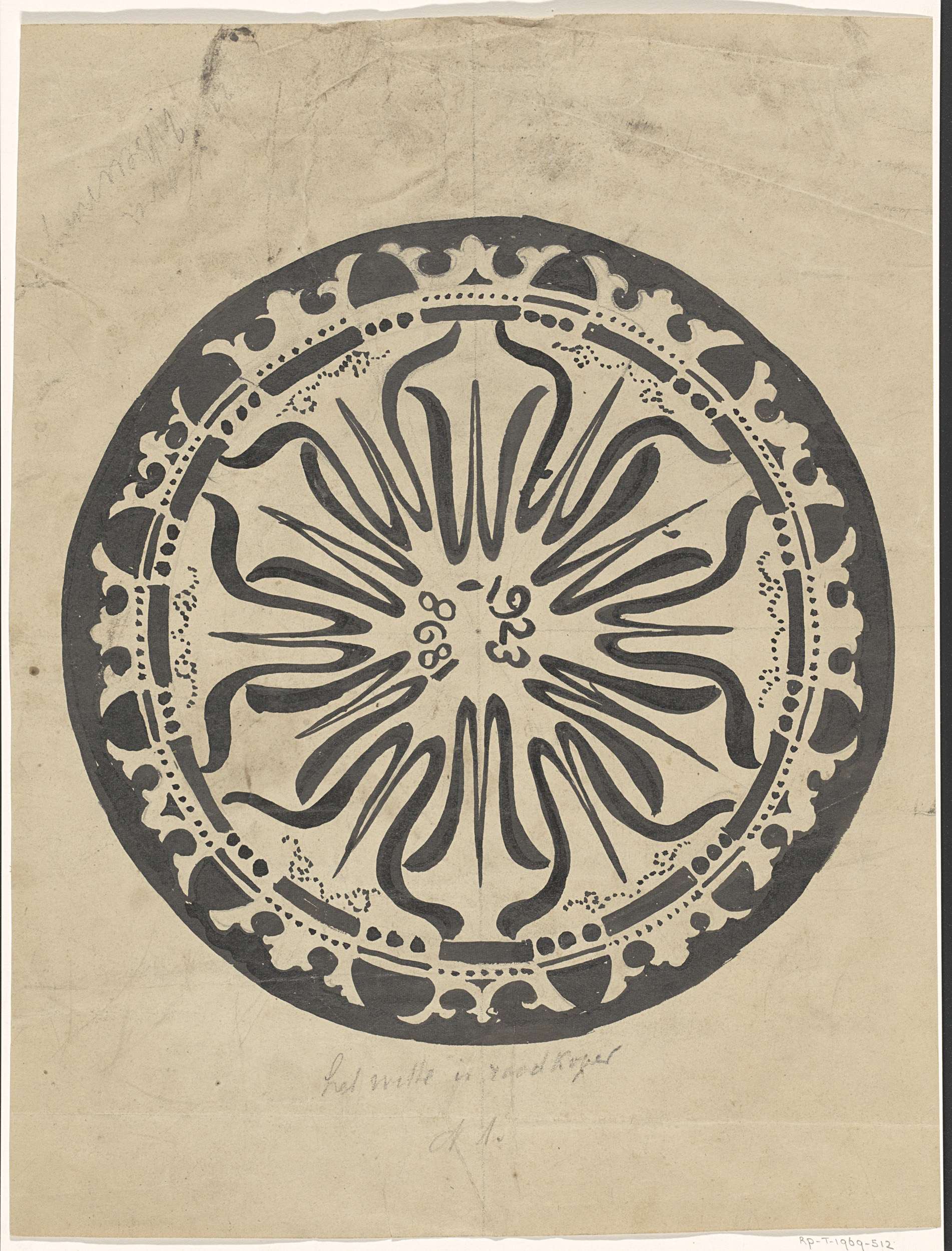 Ontwerptekening voor midden van tegeltableau ter ere...