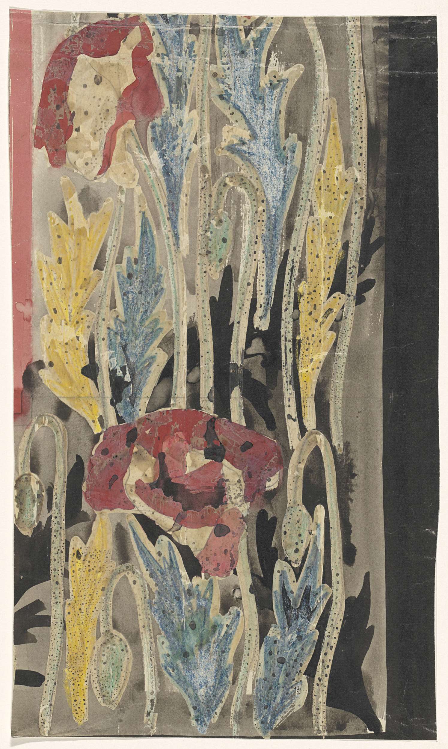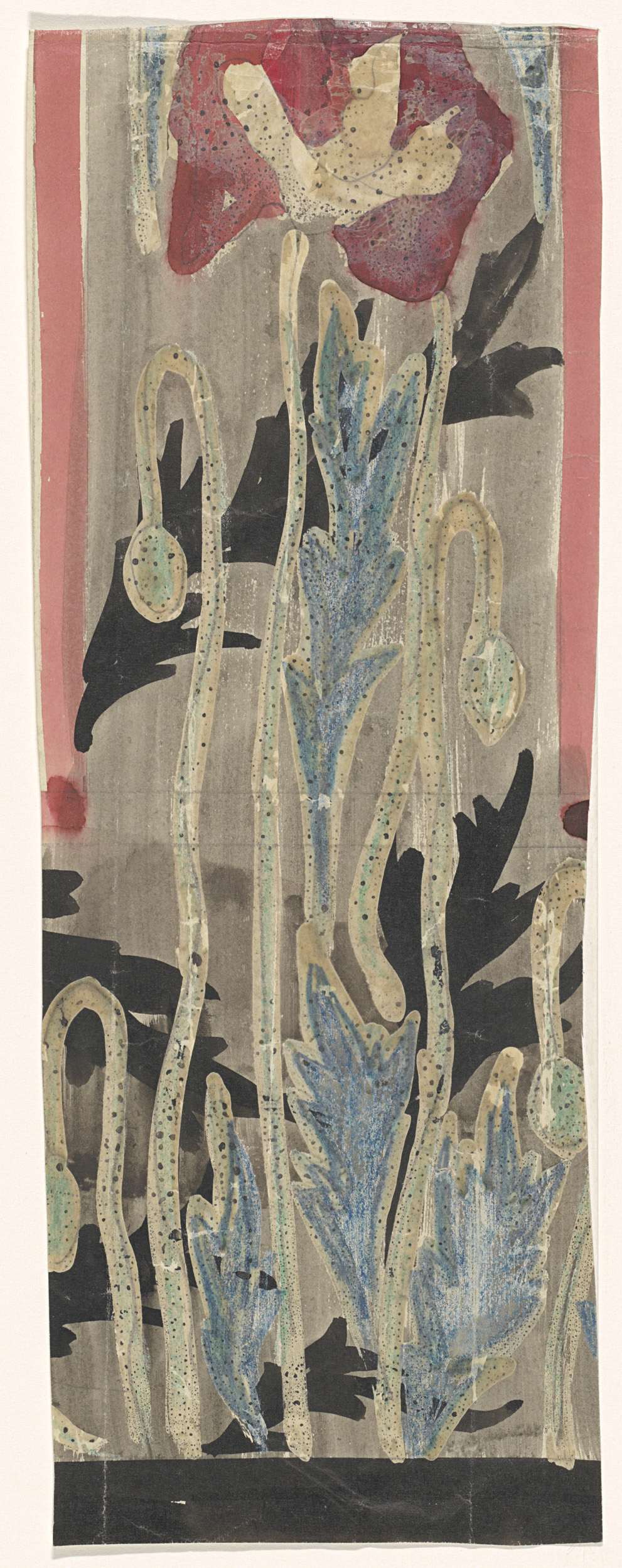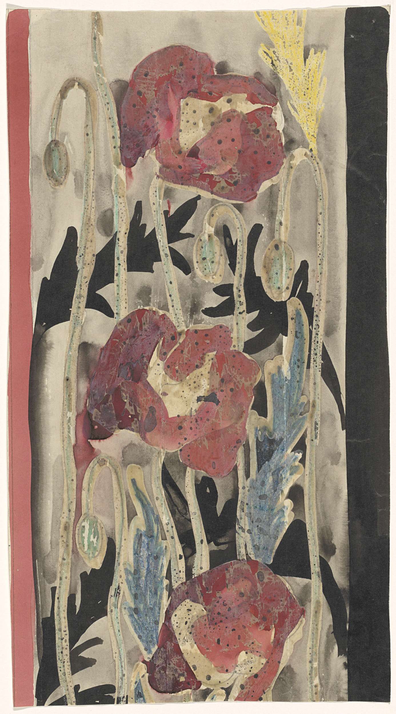 Ontwerp met papavers voor de rand van het wandtapijt...