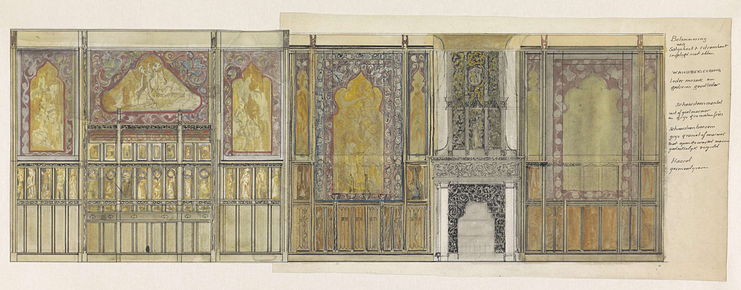 Ontwerp voor een wandbekleding en schoorsteenmantel