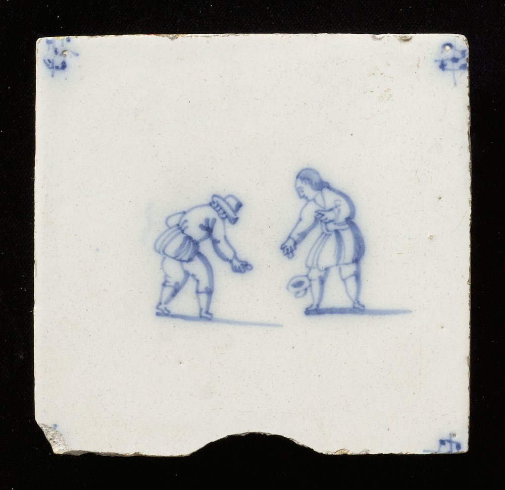 tegel van aardewerk met tinglazuur, voorstellende: k...
