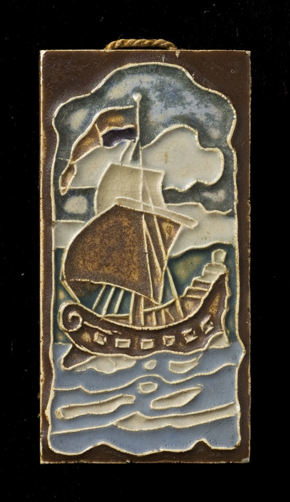 Tegel in cloisonné-techniek, met voorstelling van ko...