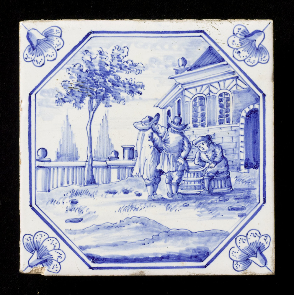 Tegel van keramiek met tinglazuur, voorstellende: dr...