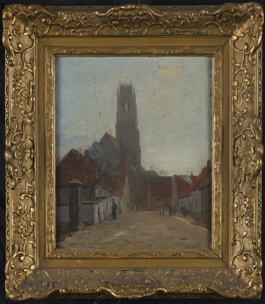 olieverf op paneel "Sint Maartenskerk gezien vanuit ...