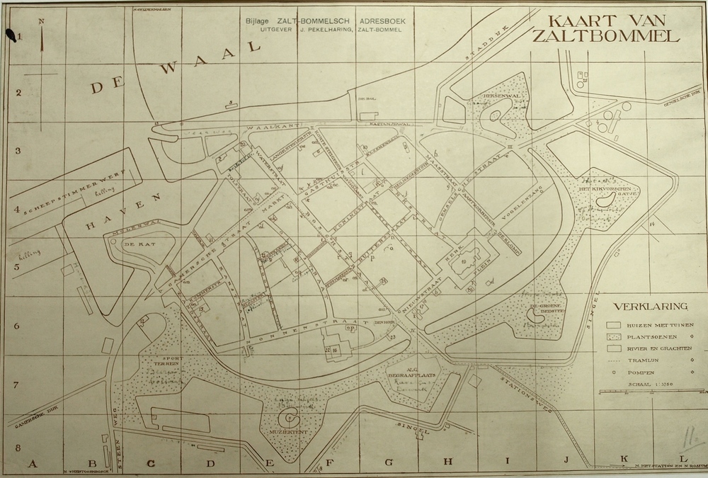 plattegrond van Zaltbommel met topografische aanduid...