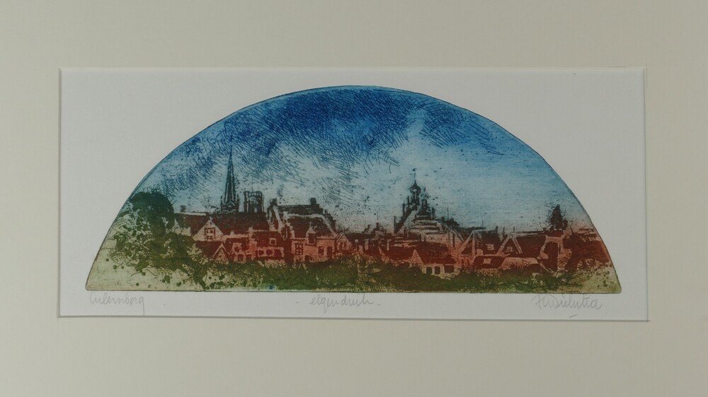 Ets in kleuren, voorsteld een stadsprofiel van Culem...