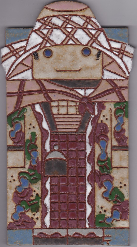 Tegel met ingekerfde lijnen, met voorstelling: stree...