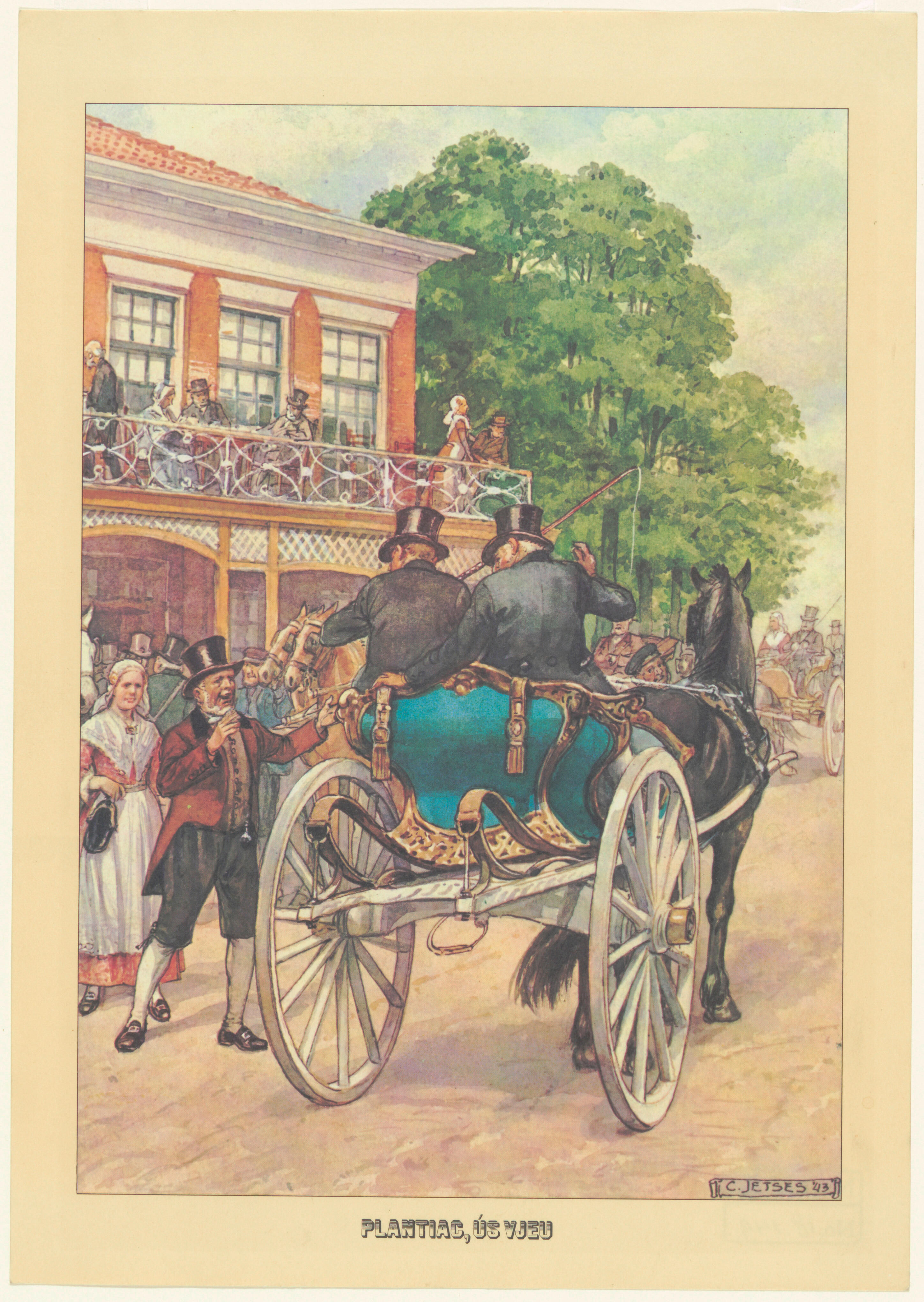 Reclameplaat van een Friese sjees voor Plantiac vieu...