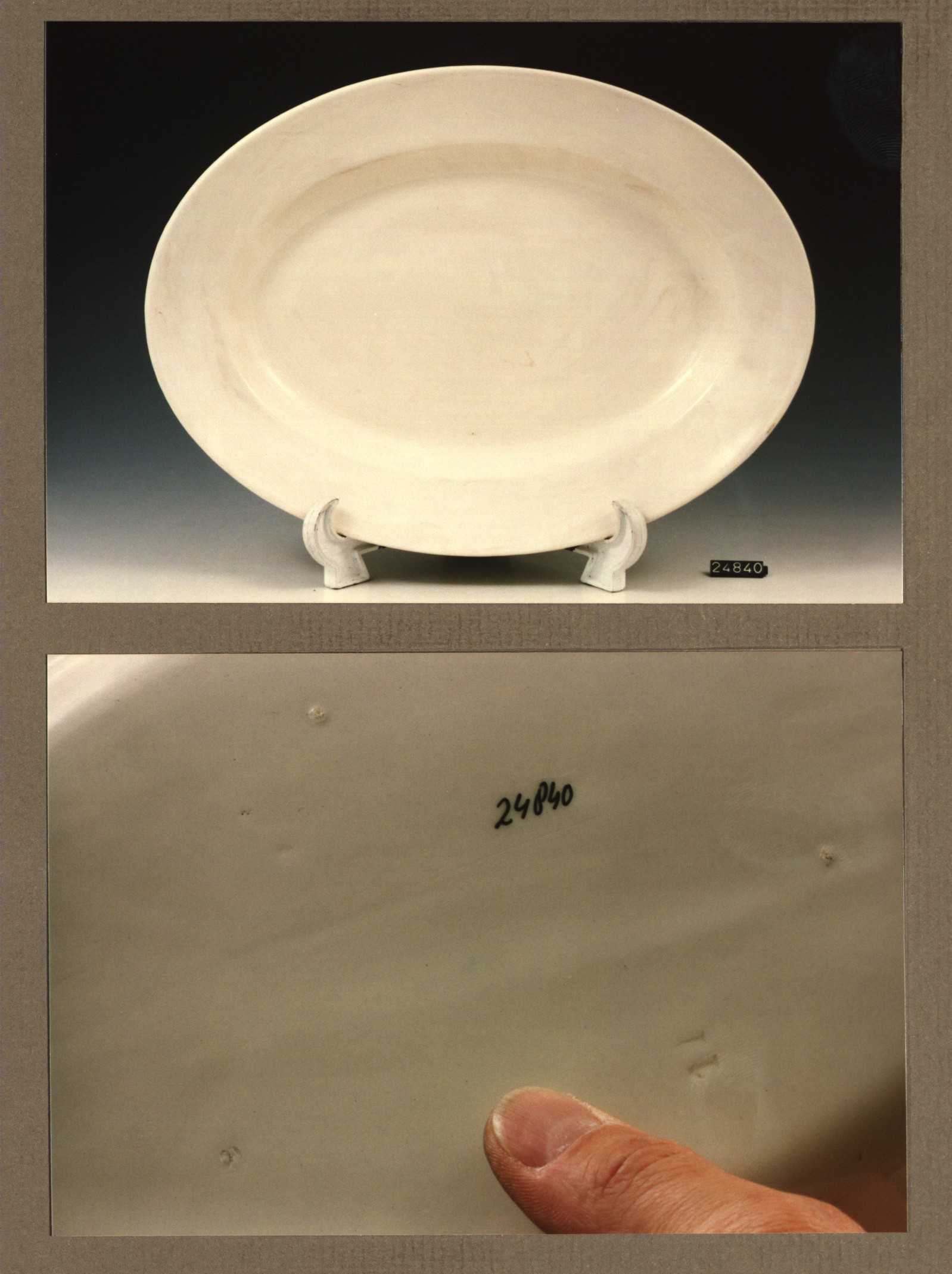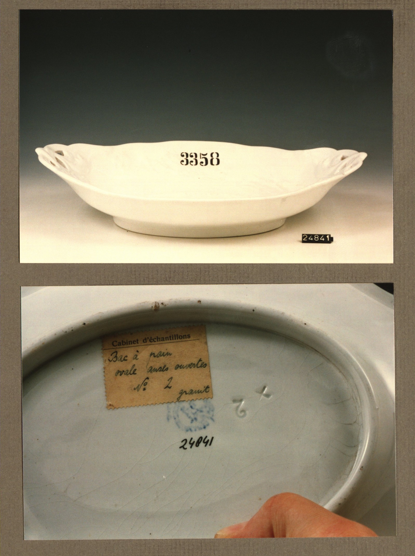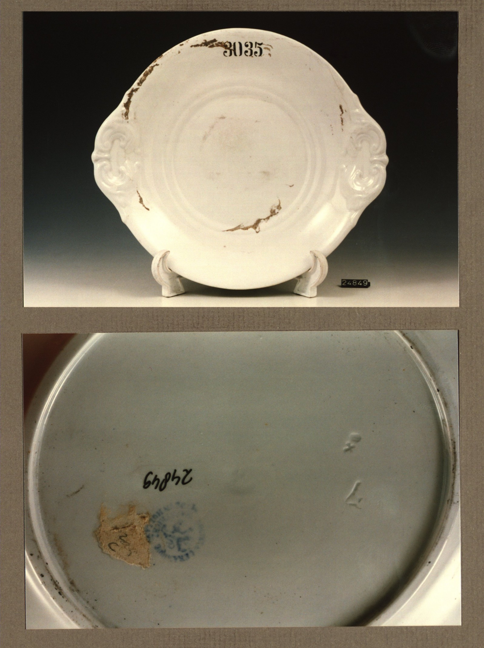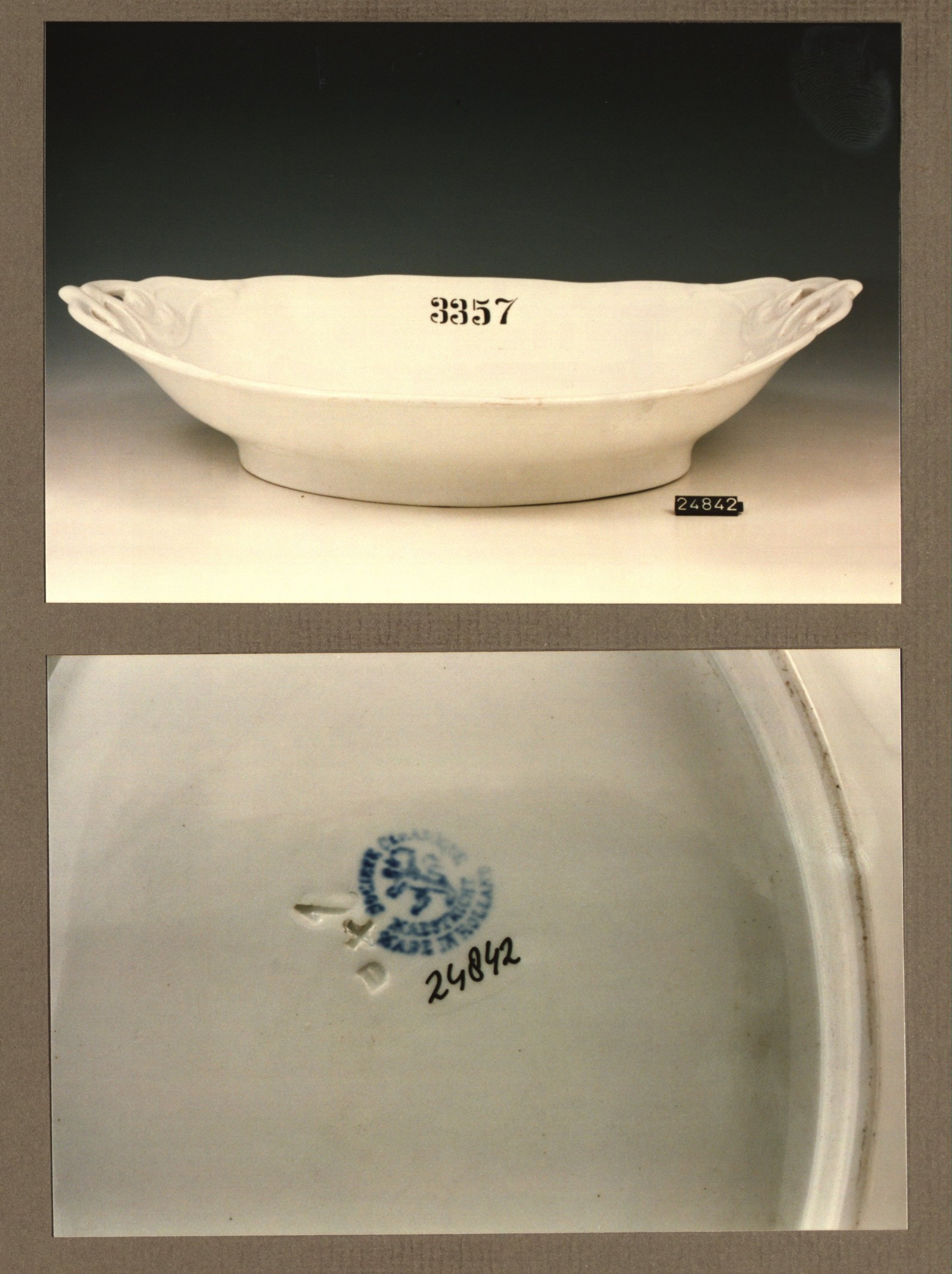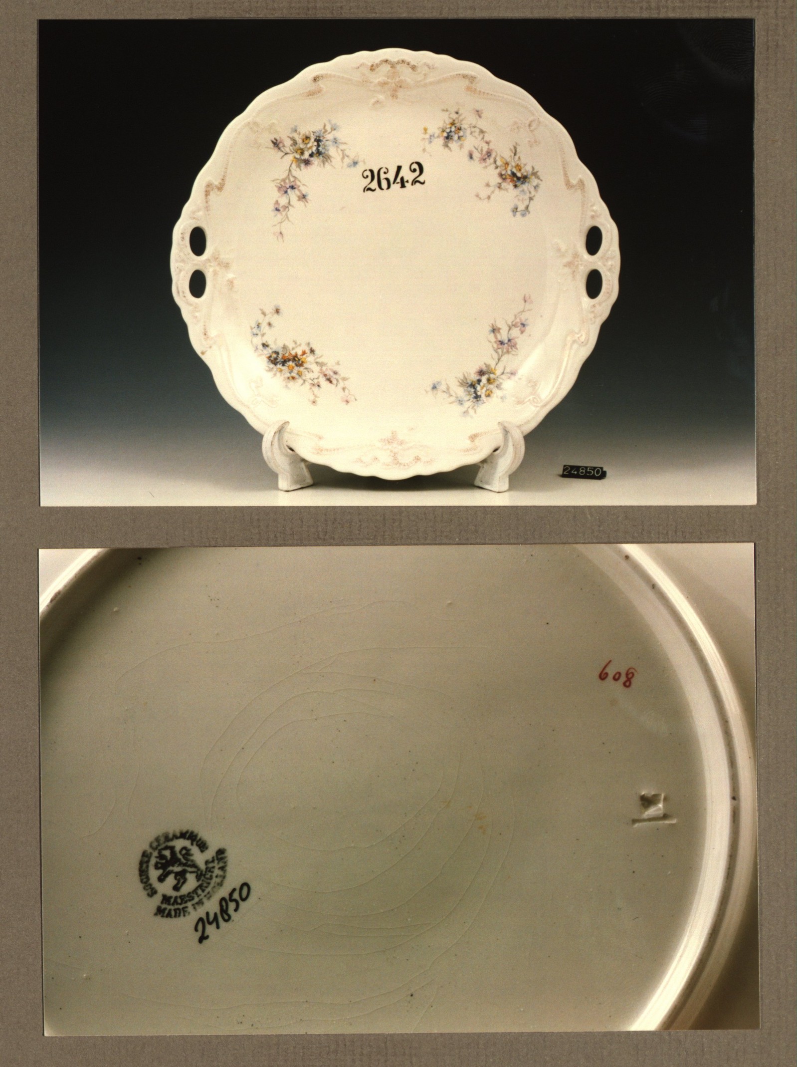 Gebakschaal, model Danois-Deensch met oren. met deco...