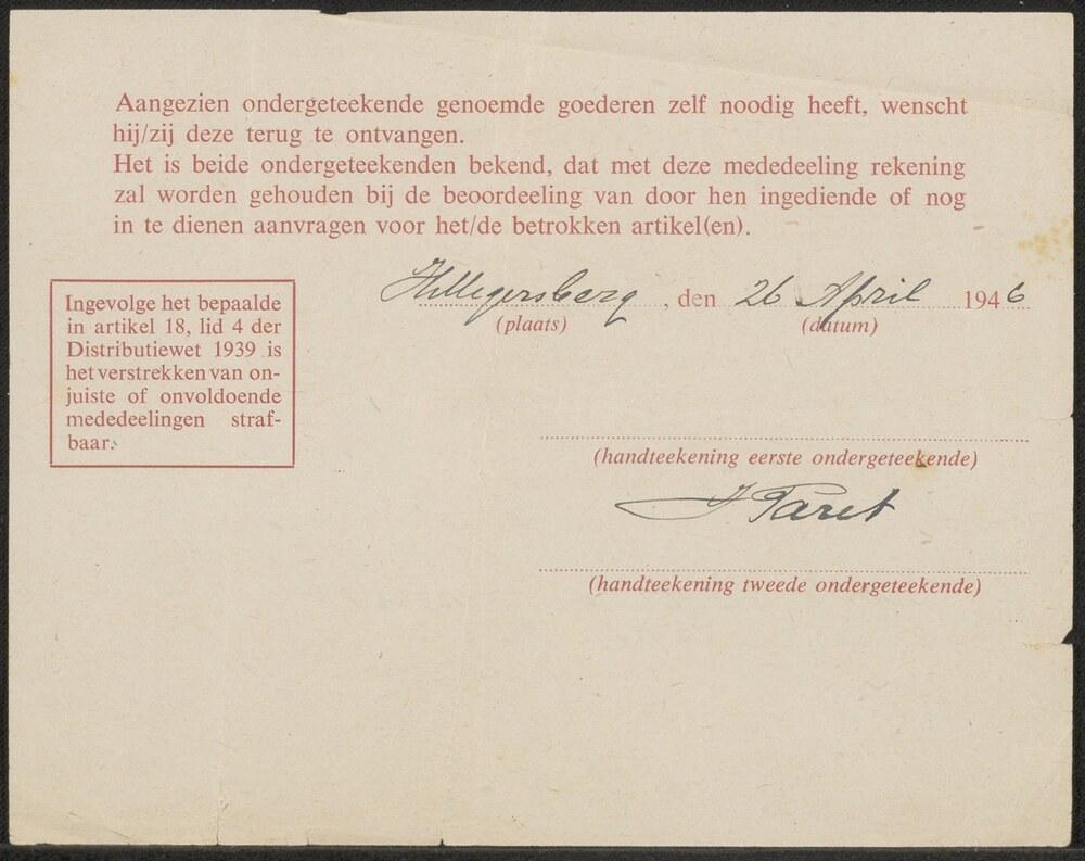 Distributiestamkaart ( tevens bewijs van opneming in...