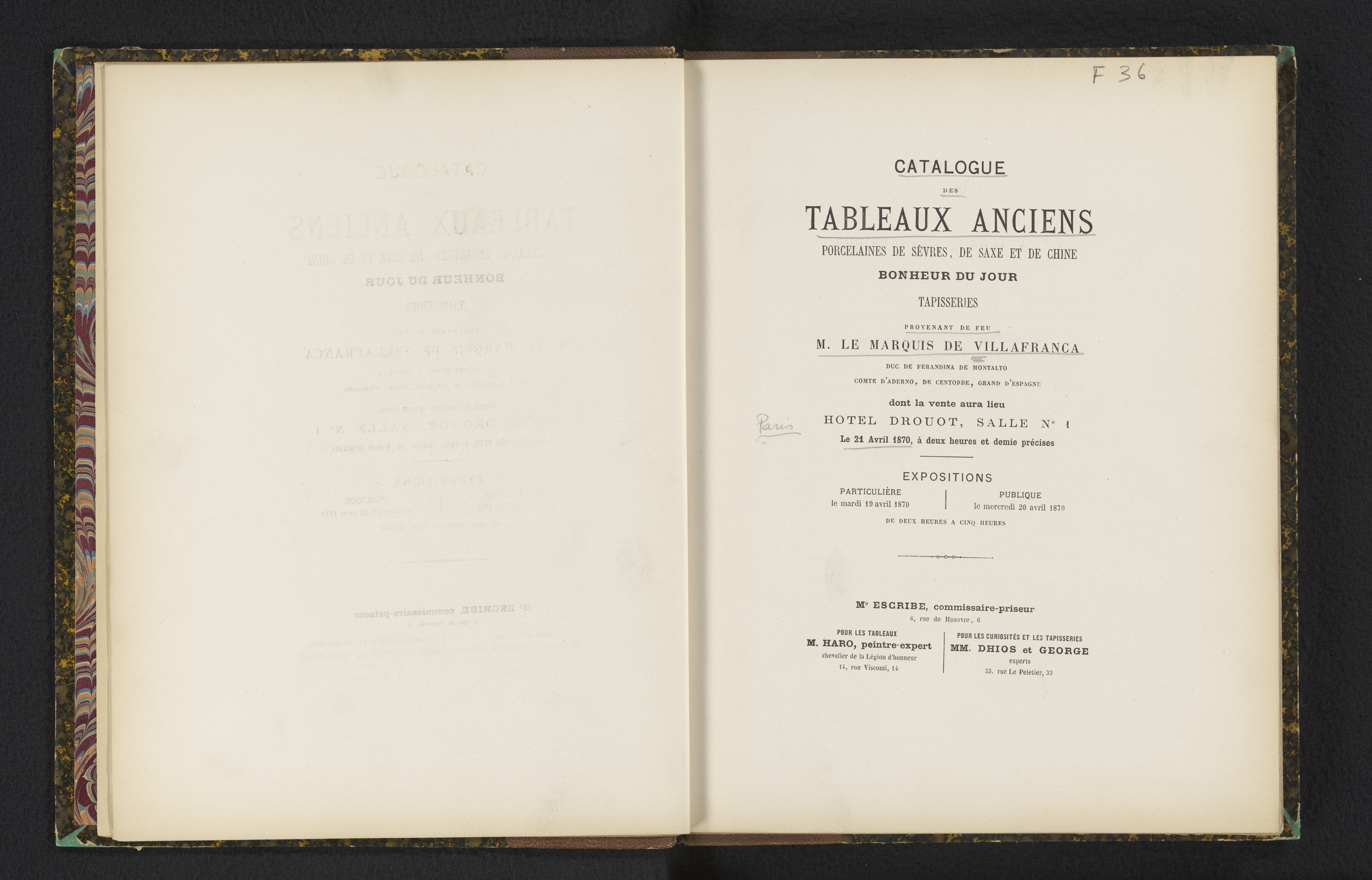 Catalogue des tableaux anciens porcelaines de Sèvres...