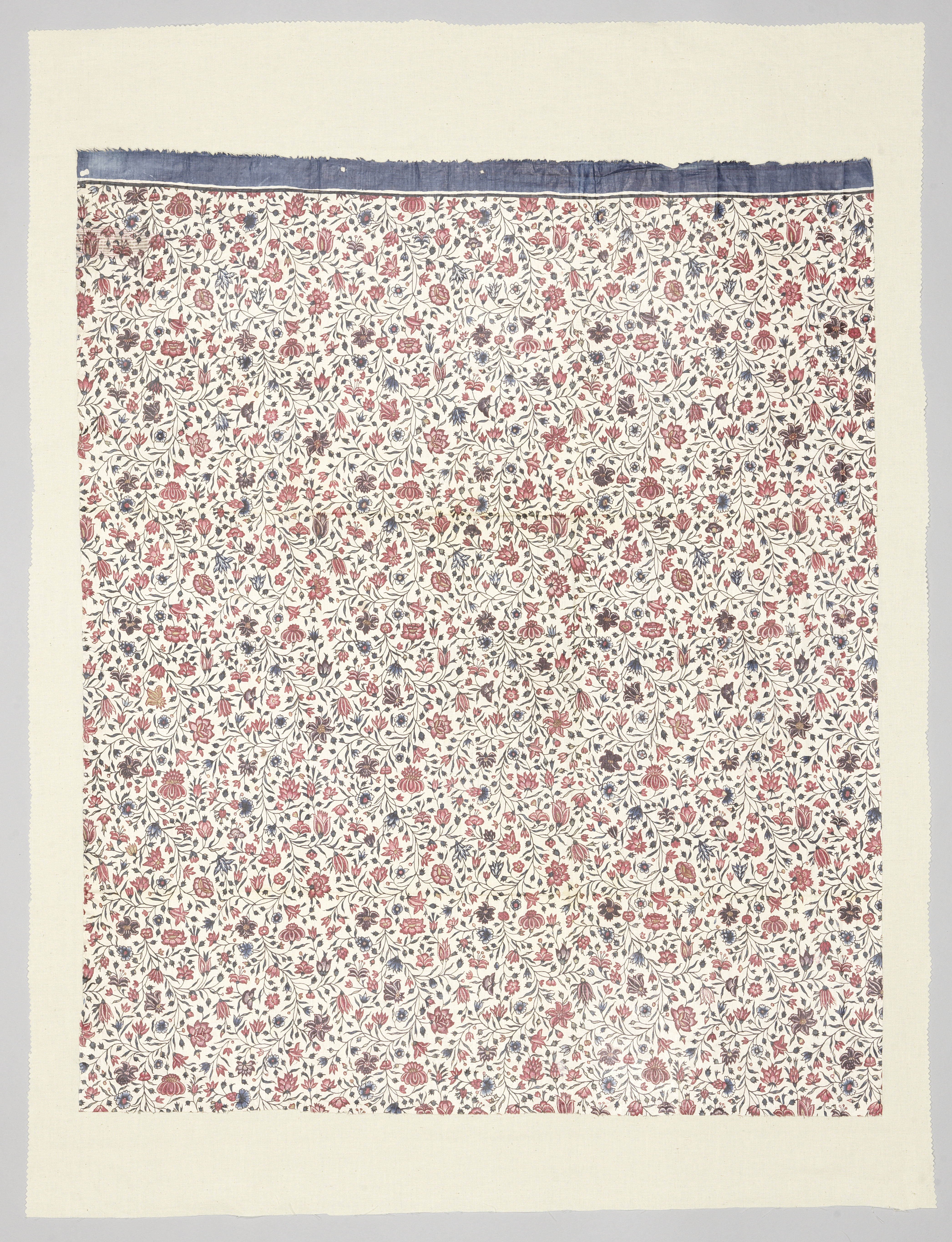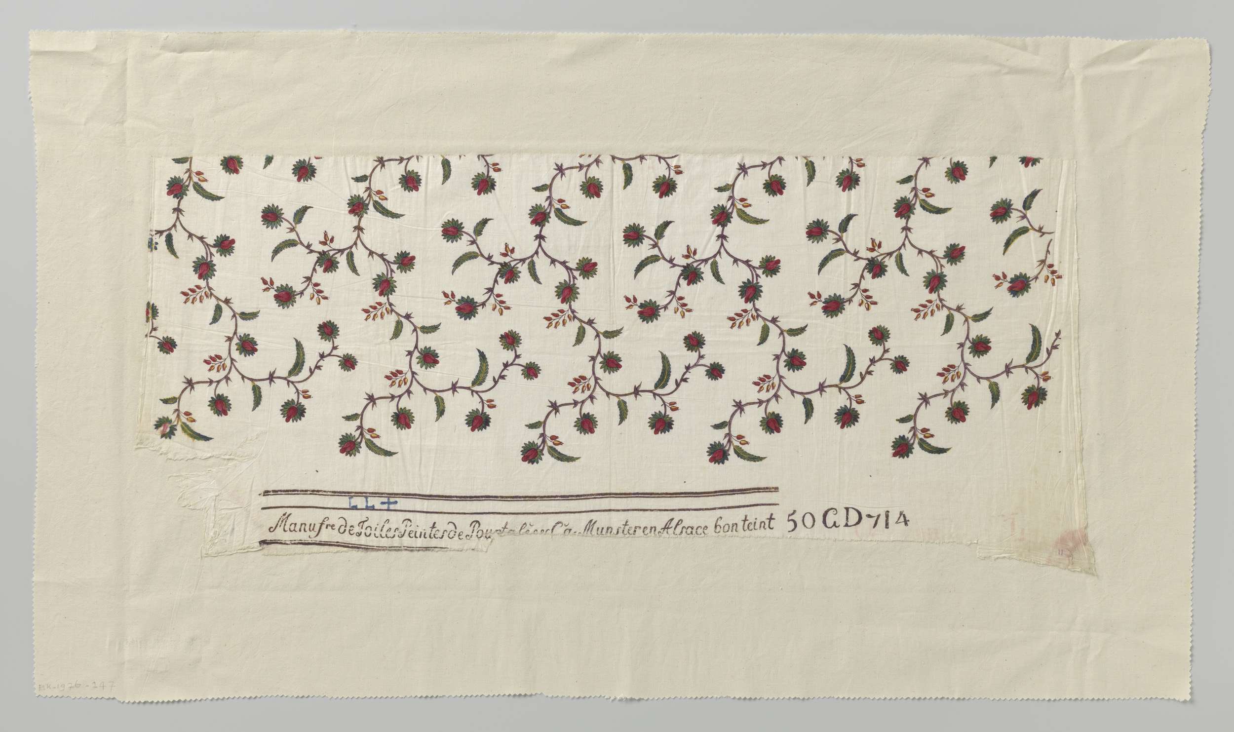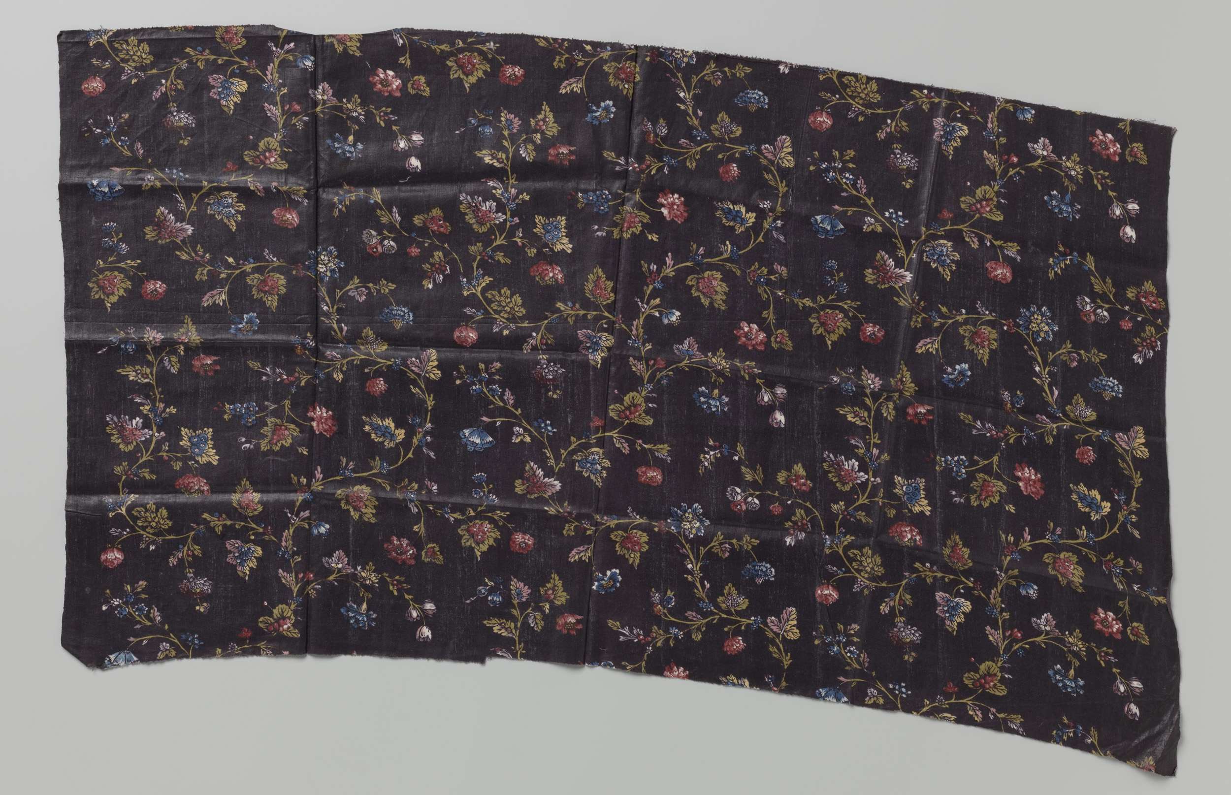 Fragment van katoen, bedrukt met bloemtakken