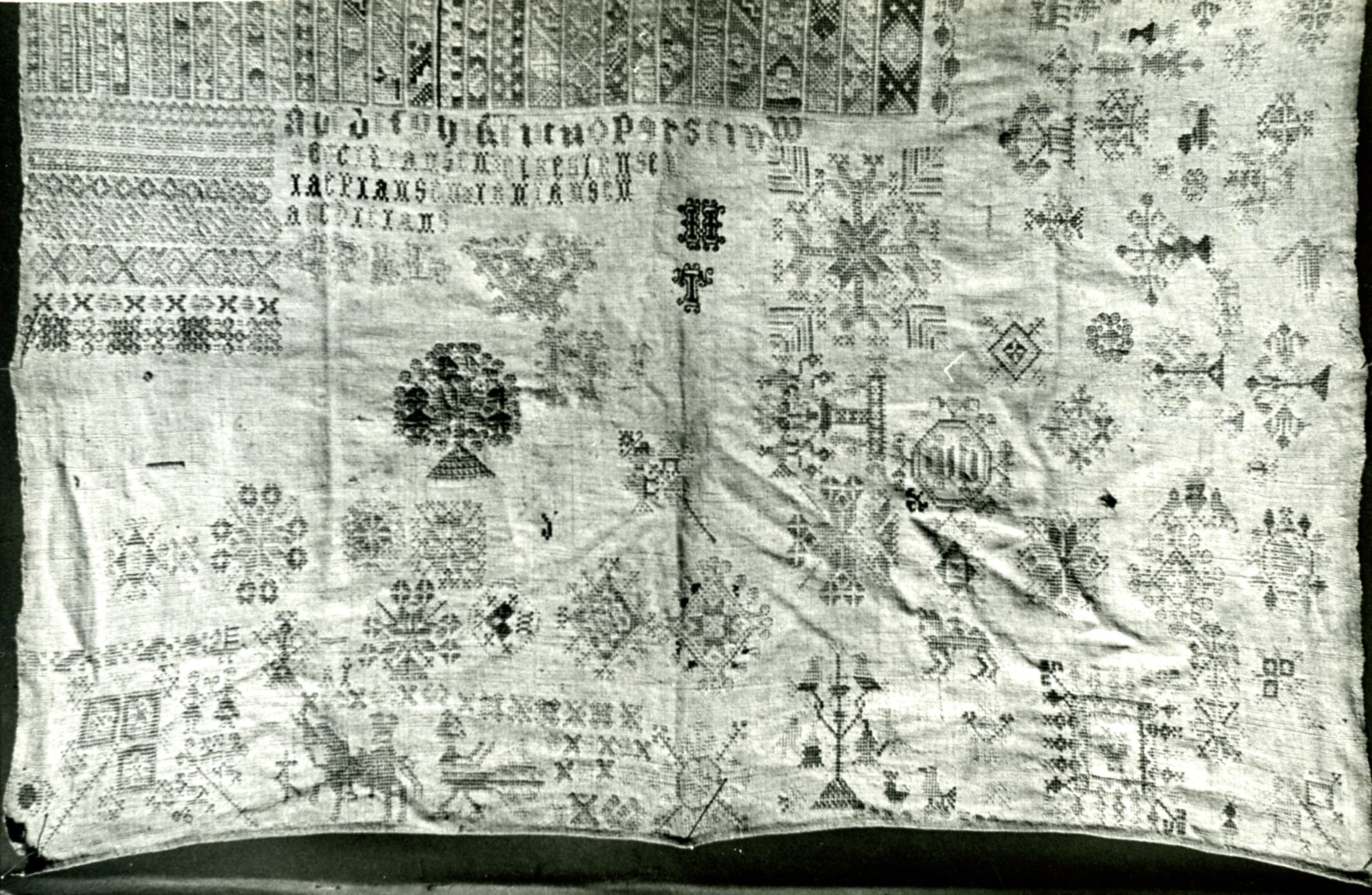 Detail van een merklap, Marken, 1943 (zwart-wit foto)