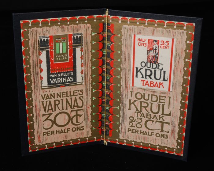 Kartonnen omslag van Van Nelle met reclames "VARINAS...