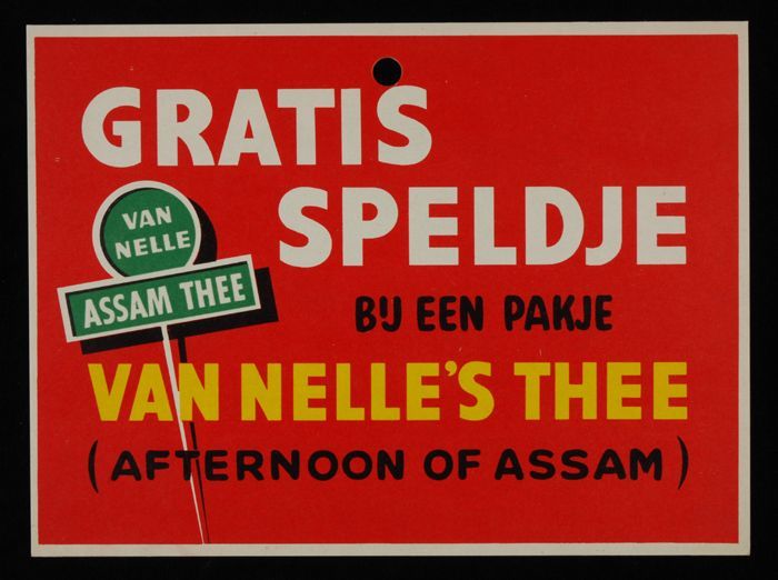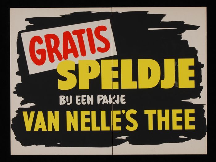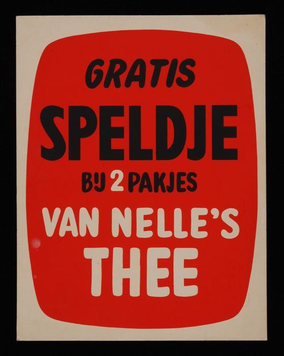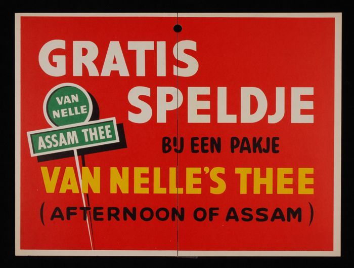 Reclamebord Van Nelle's thee met "GRATIS SPELDJE"