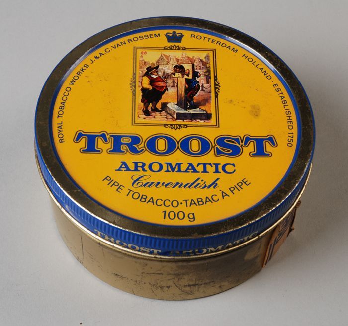 Bruin tabaksblik met los deksel, Van Rossem, product...