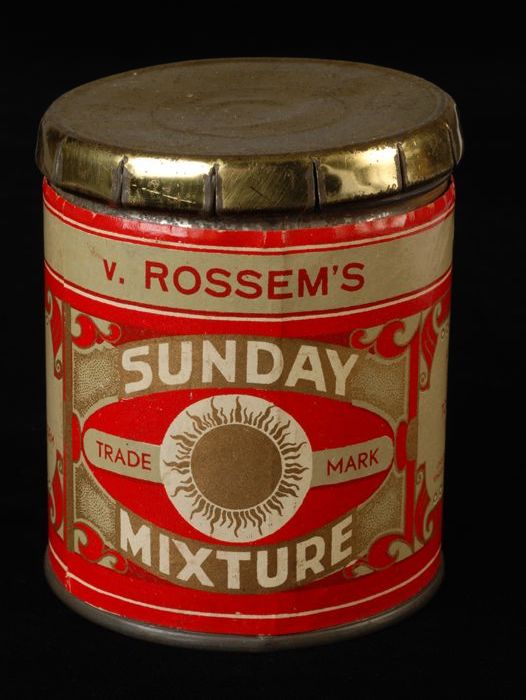 Cilindrisch tabaksblik met los deksel van Van Rossem...