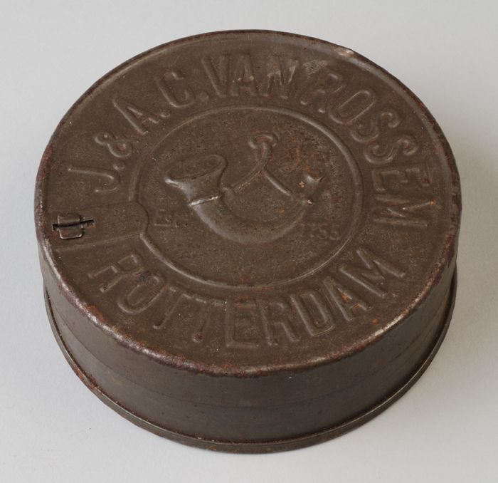IJzeren tabaksblik met losse deksel, Van Rossem
