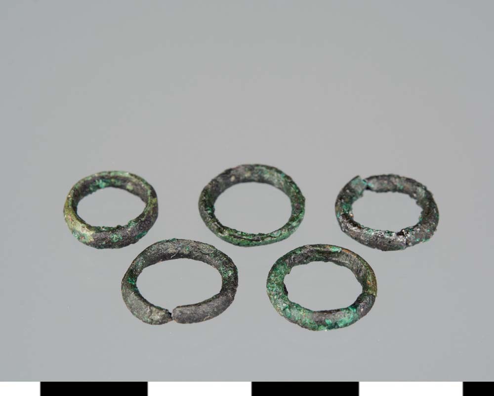 Vijf kleine bronzen ringen uit de Romeinse tijd
