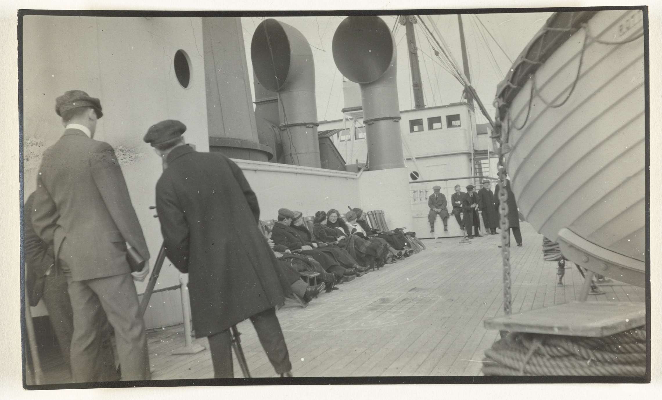 Aan boord van schip naar New York in Eerste Wereldoo...