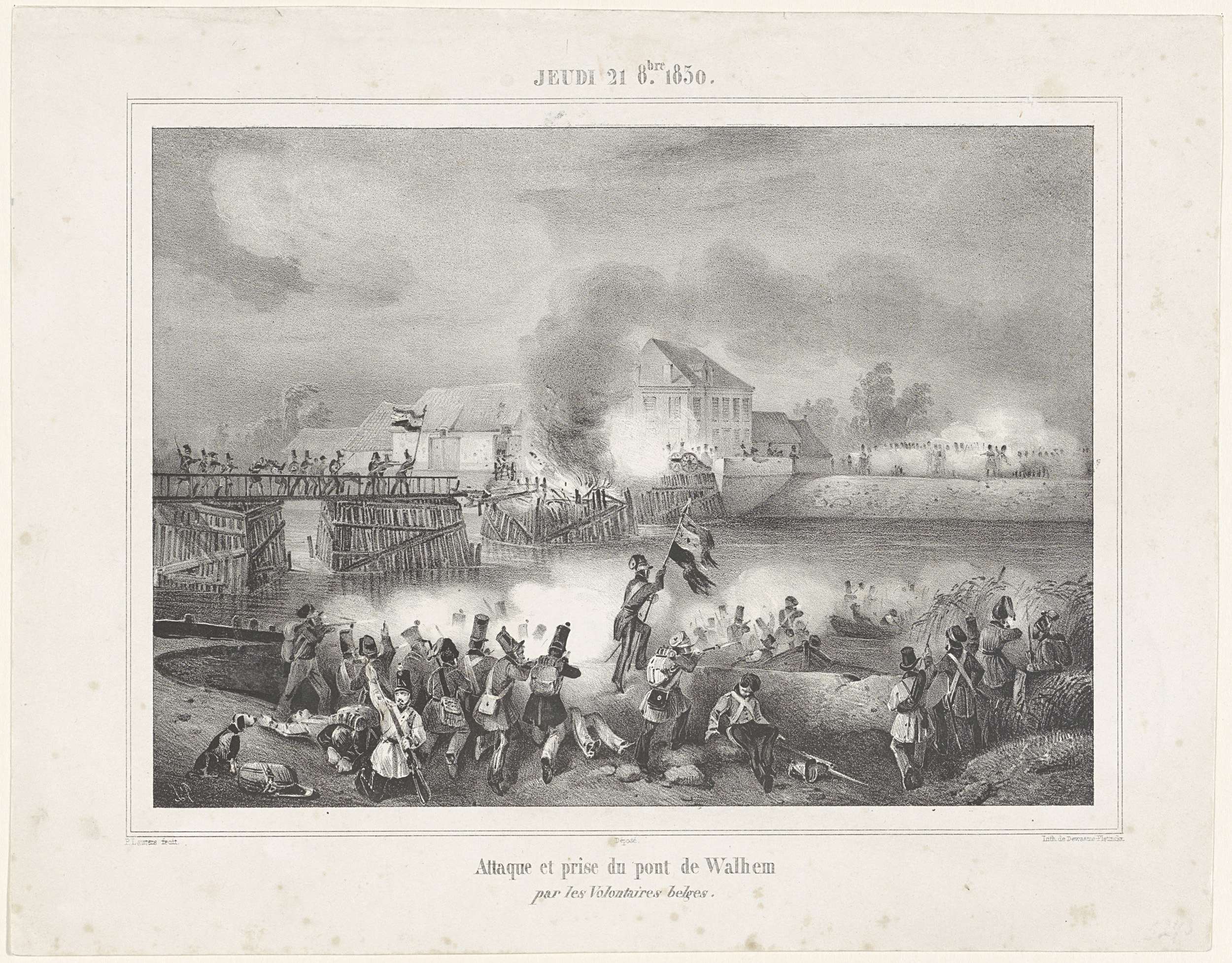 Nemen van brug bij Walem, 1830