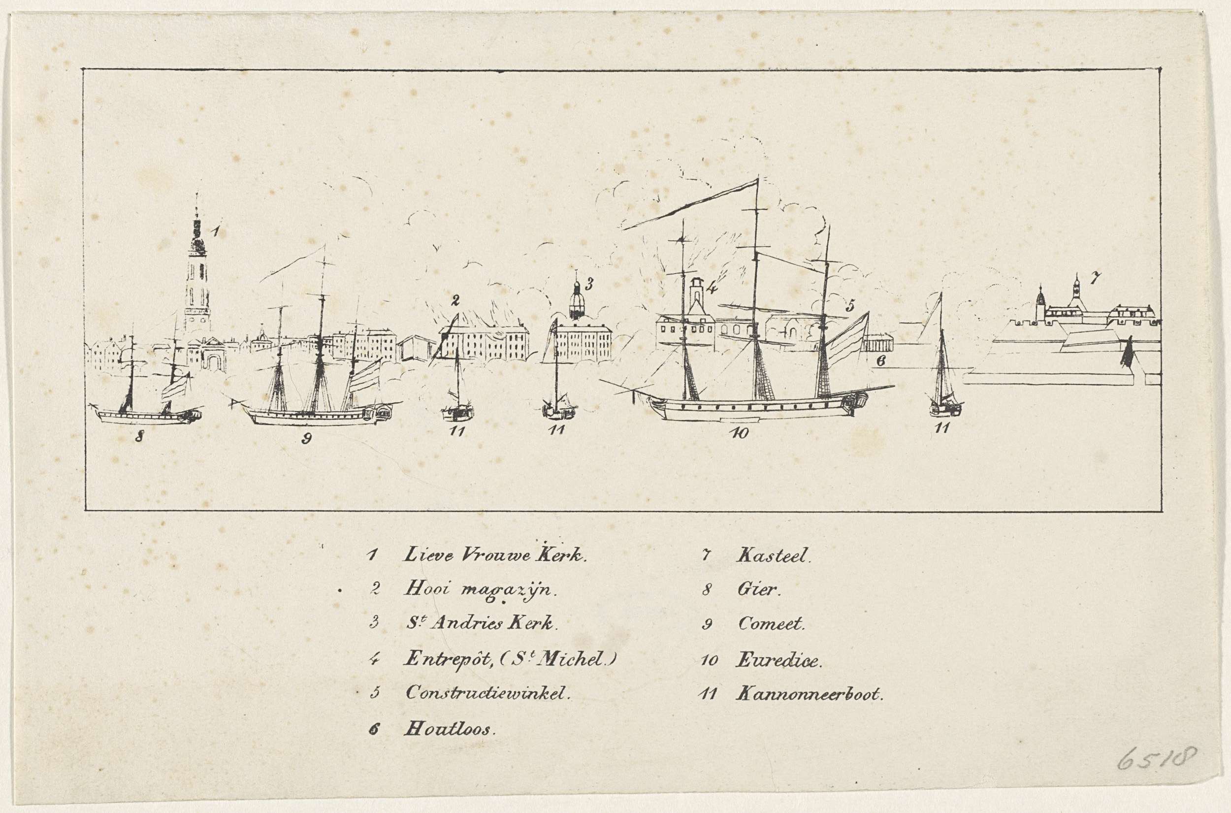 Sleutel bij de prent van de beschieting van Antwerpe...