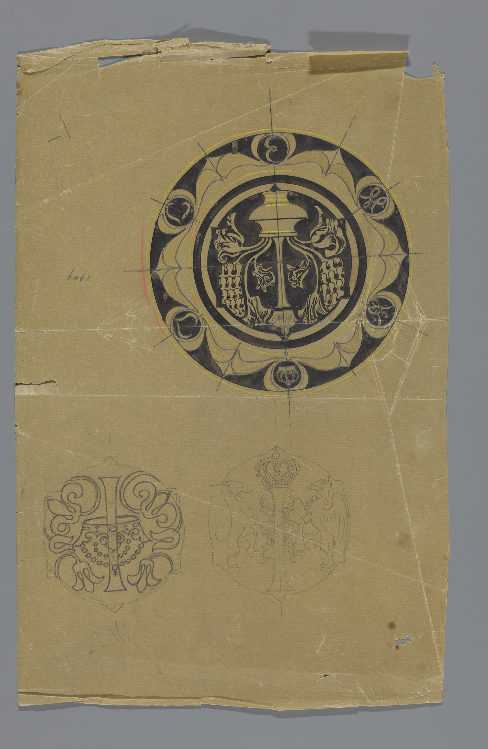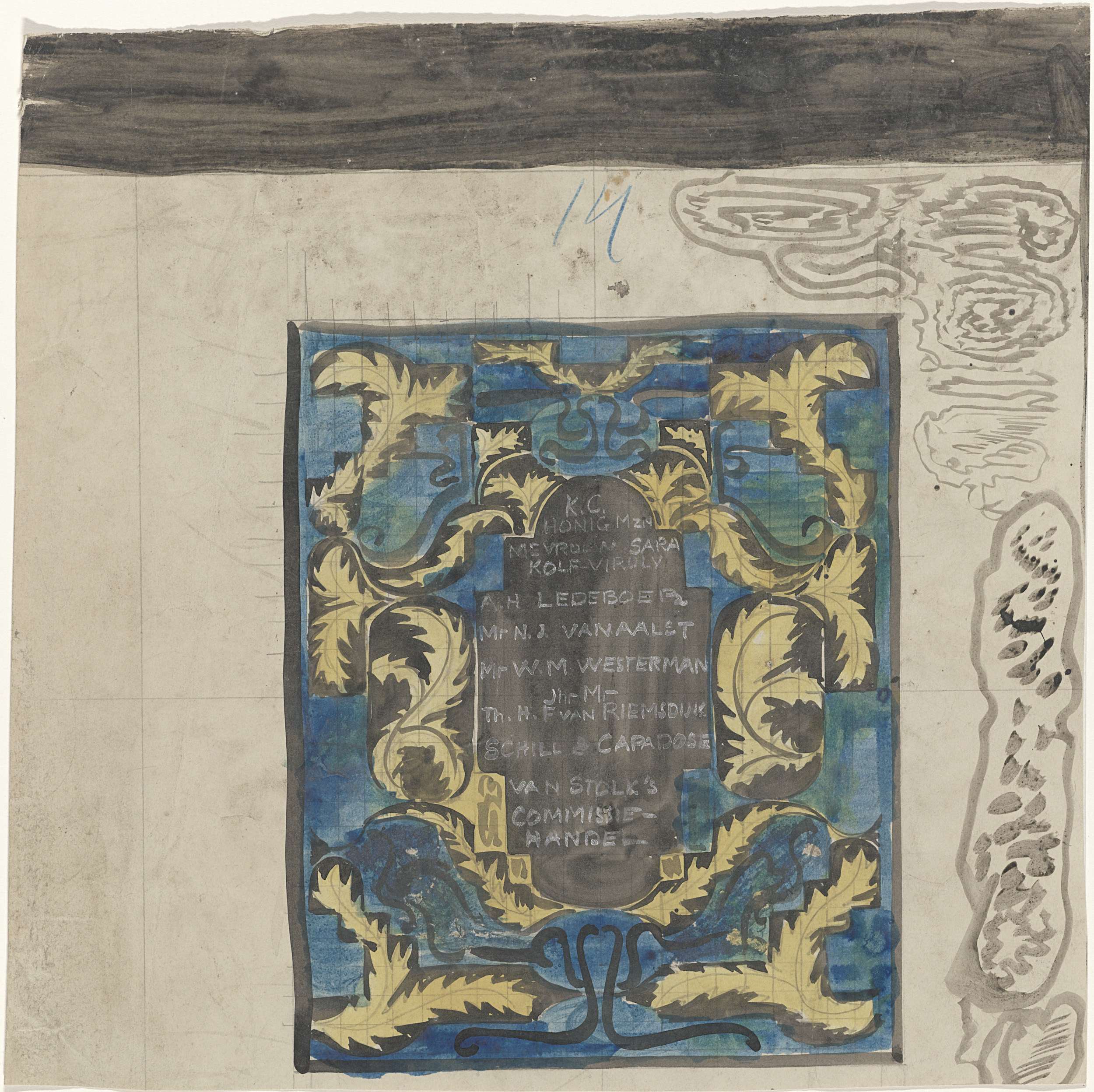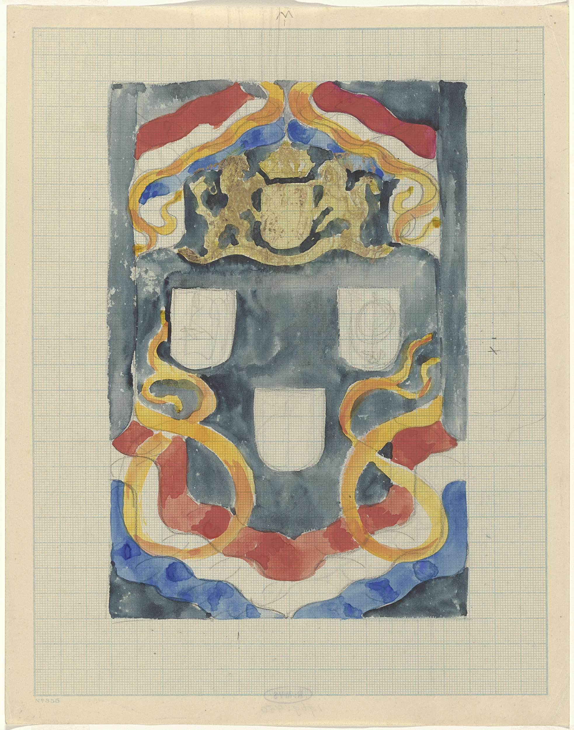 Ontwerp voor een gedenkbord met W en een wapenschild