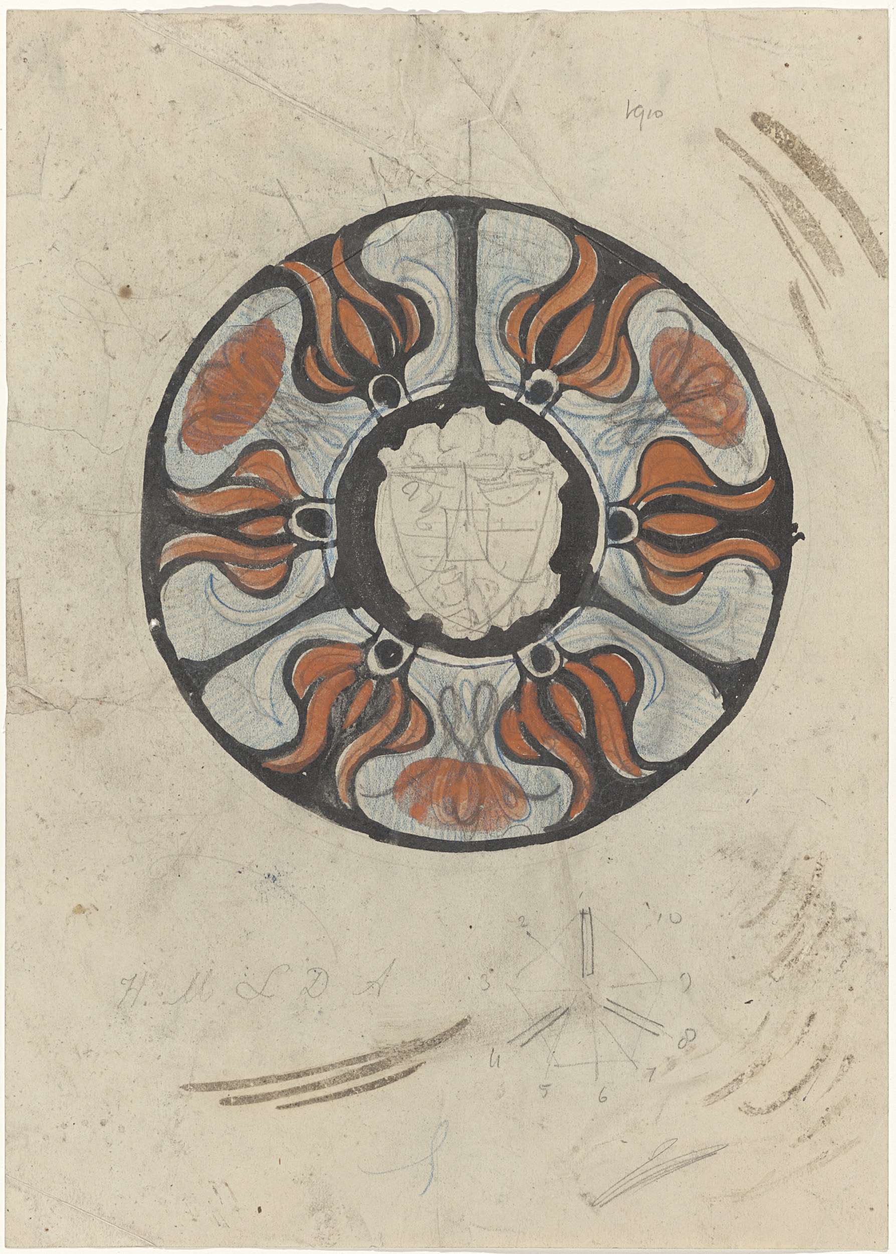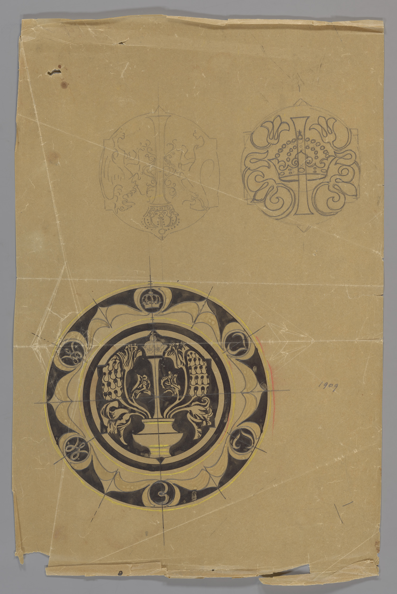 Ontwerp voor een bord met gekroonde W en het jaartal...