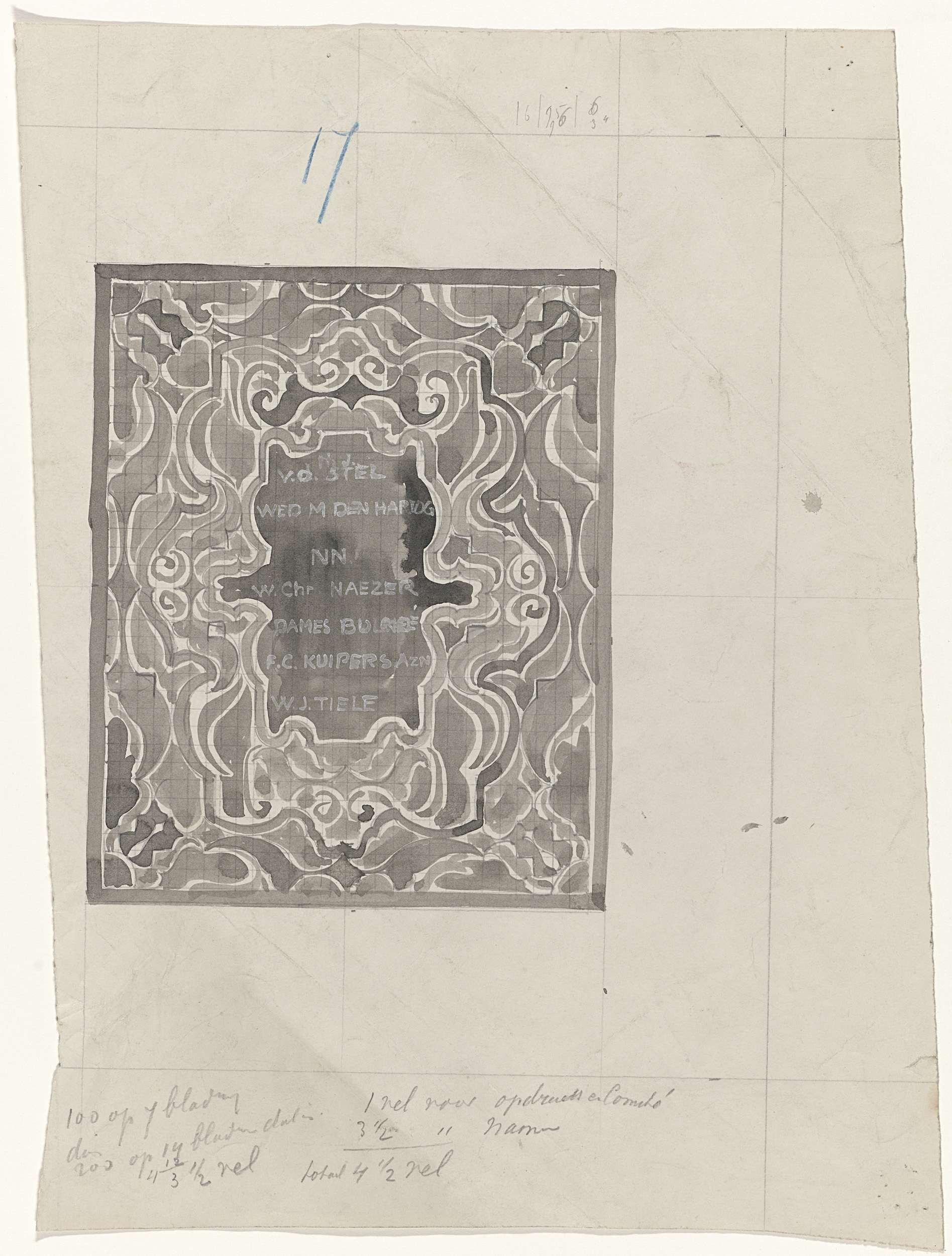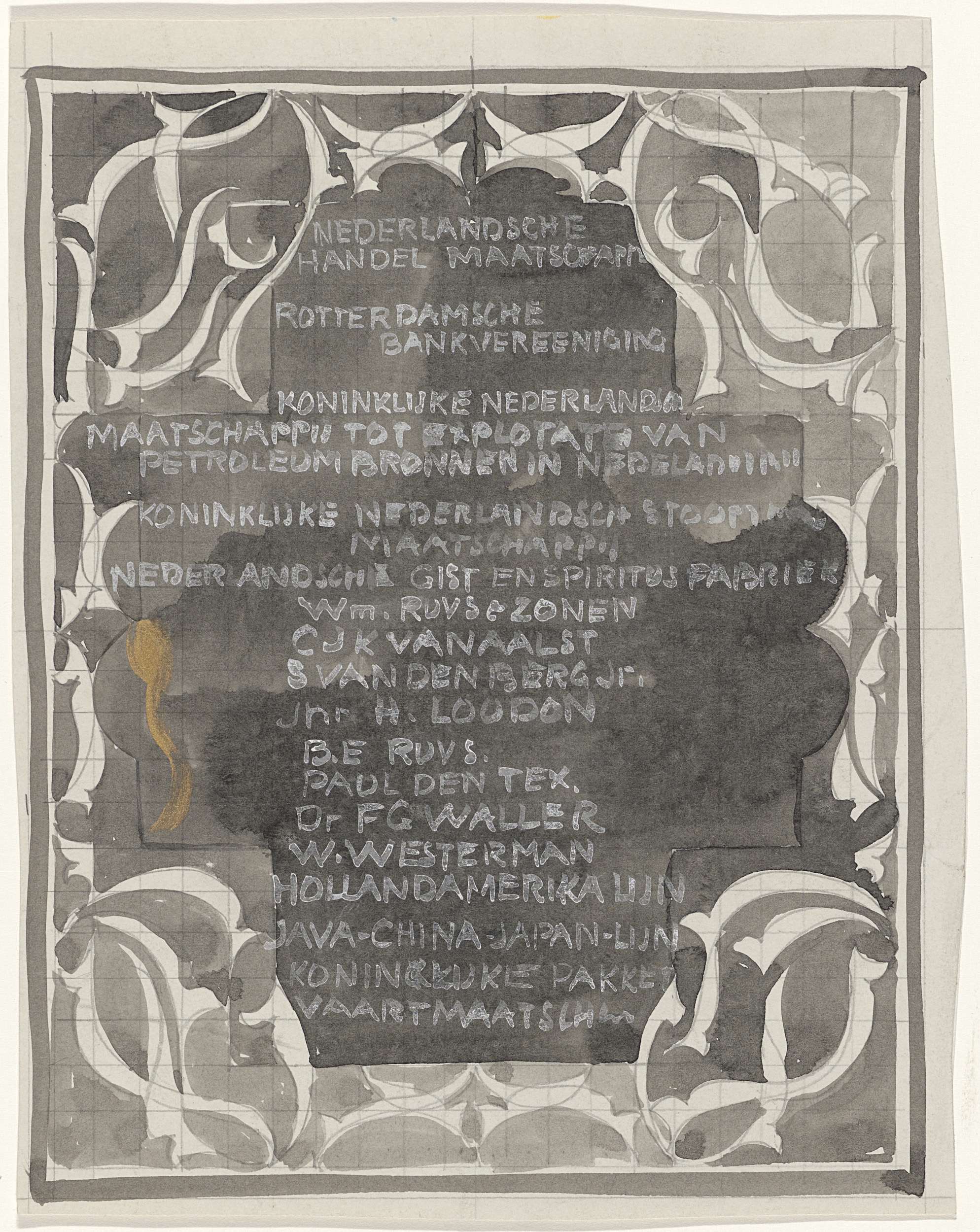 Ornamentaal ontwerp met namen van Van Stolk's Commis...