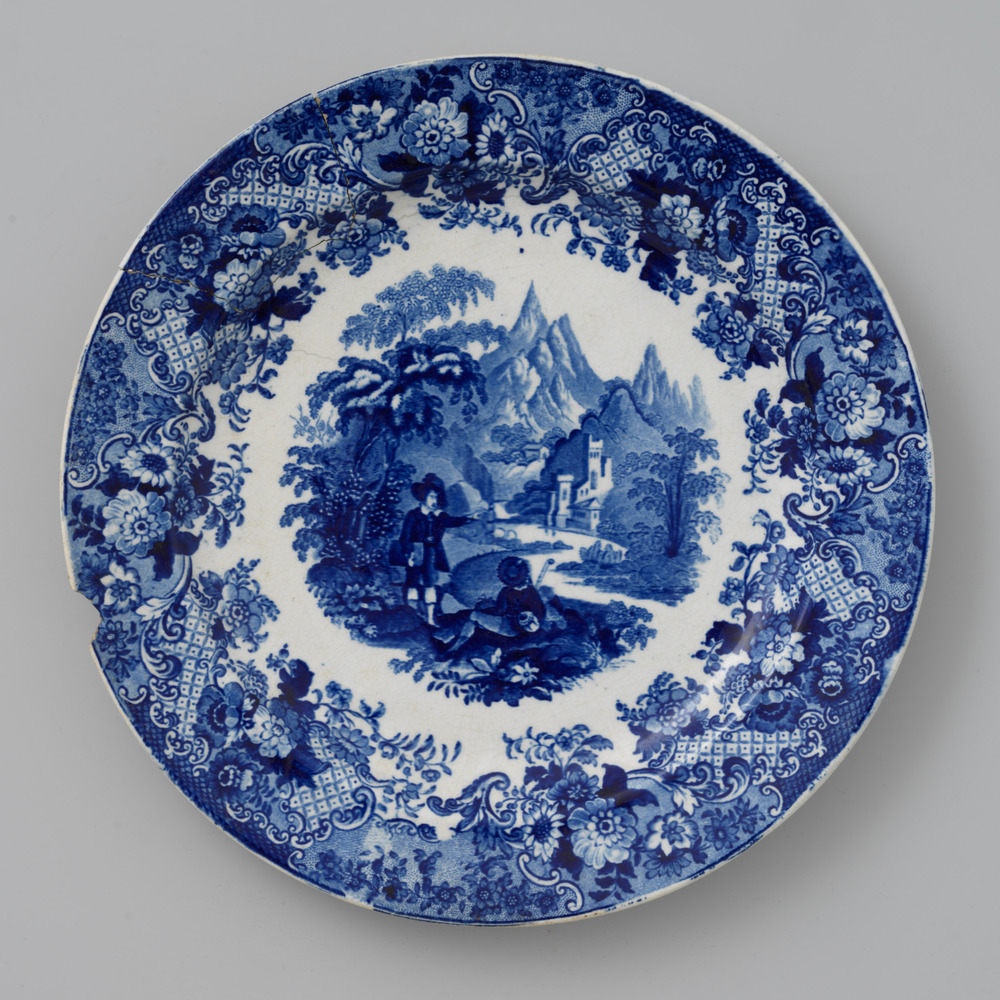 Tegel van keramiek, tinglazuur, voorstellende herder...