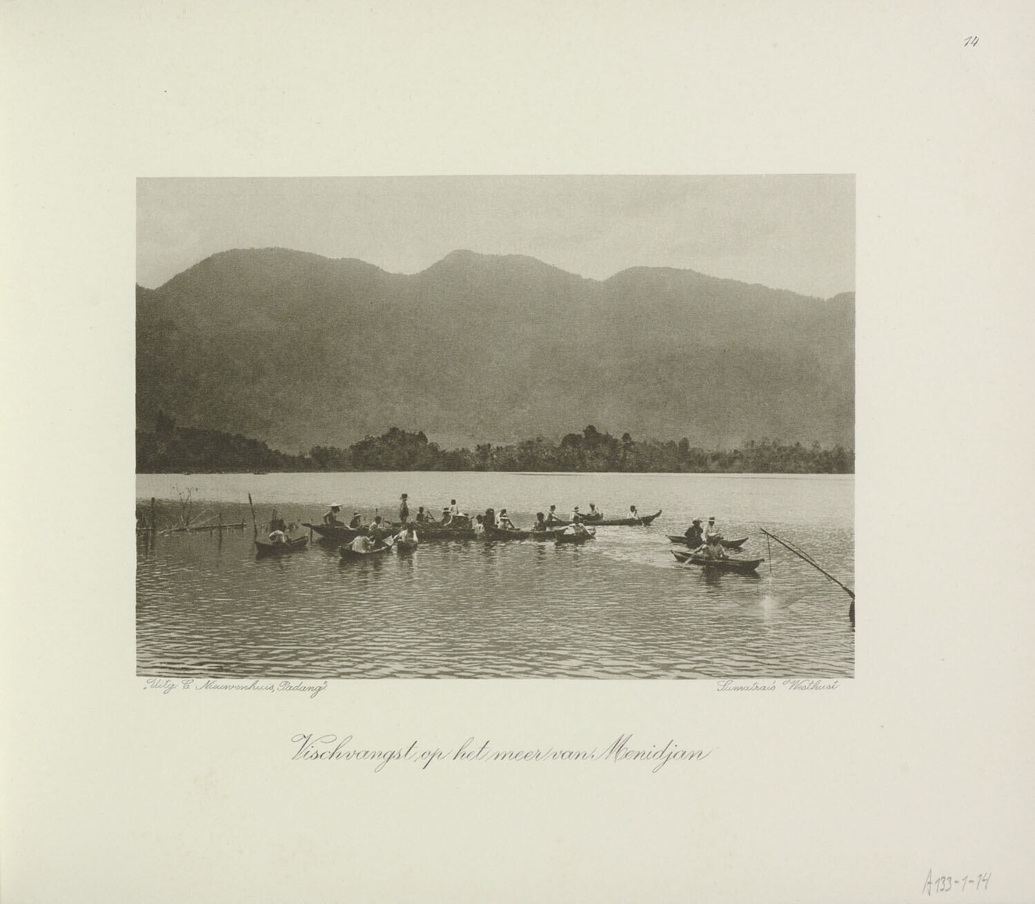 Vissers in boten op het meer van Menidjan aan Sumtra...
